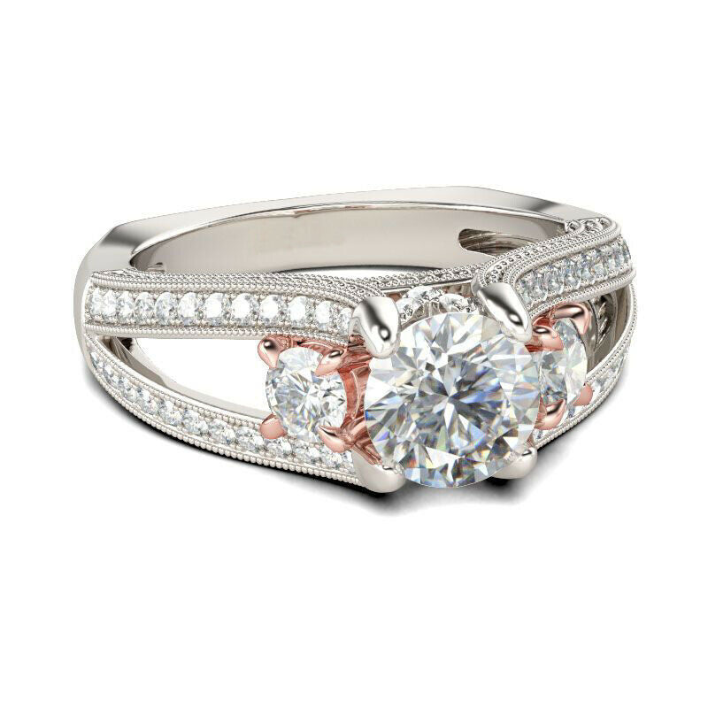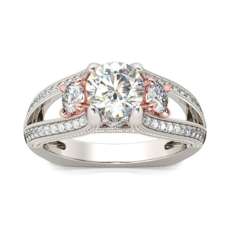 3.5Ct Round Cut Diamond Accents Solitaire Engagement Ring 14K Dual Gold Finish