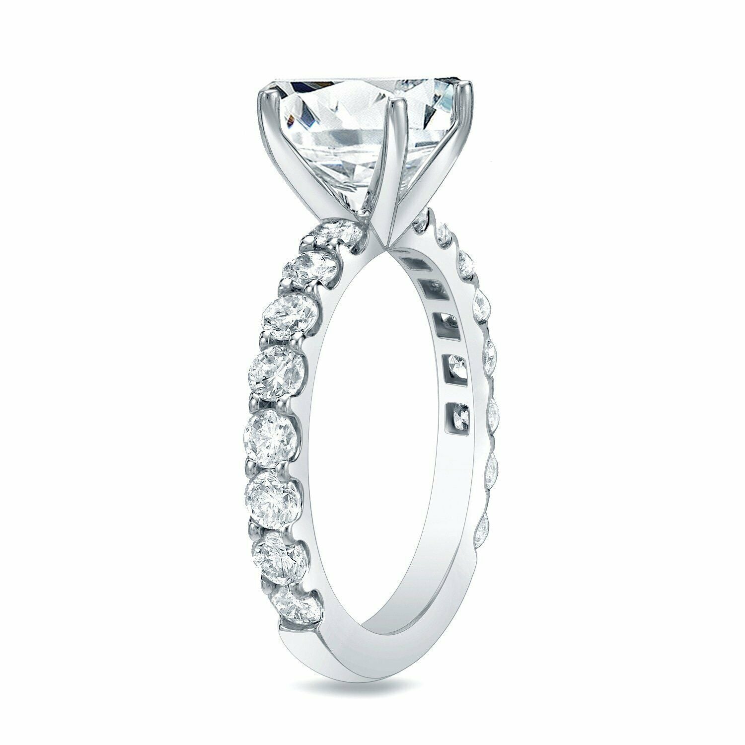 3Ct Asscher Cut Diamond Solitaire Ring 14K White Gold Finish with Round Accents
