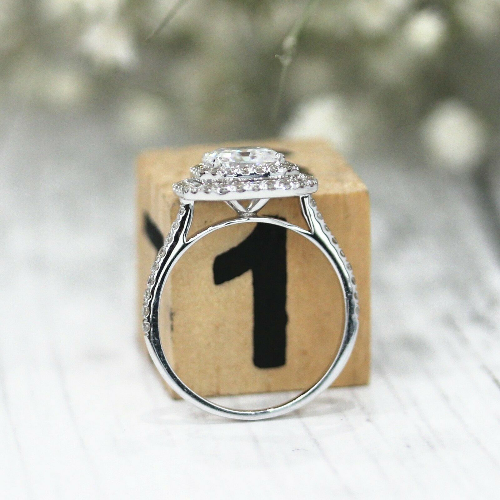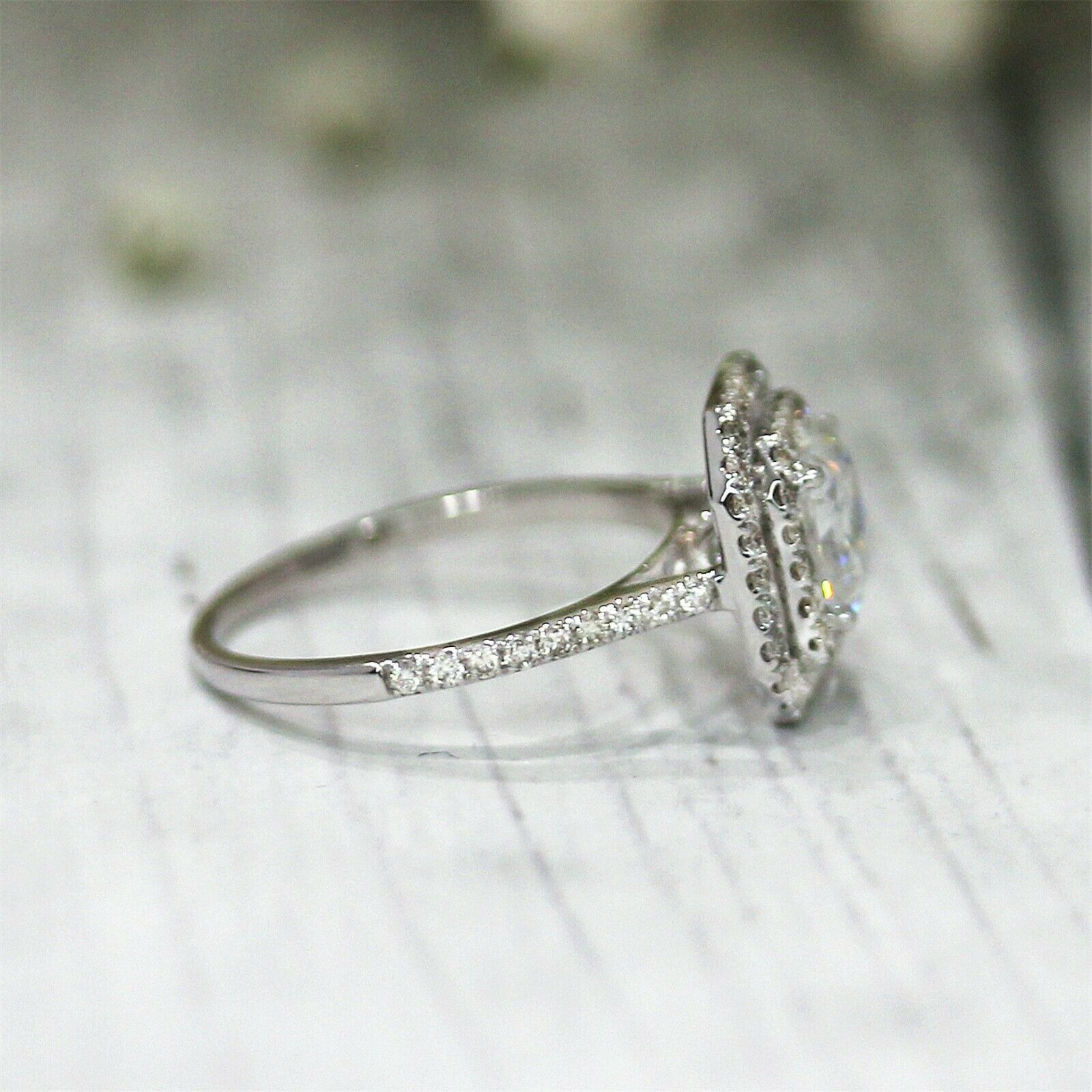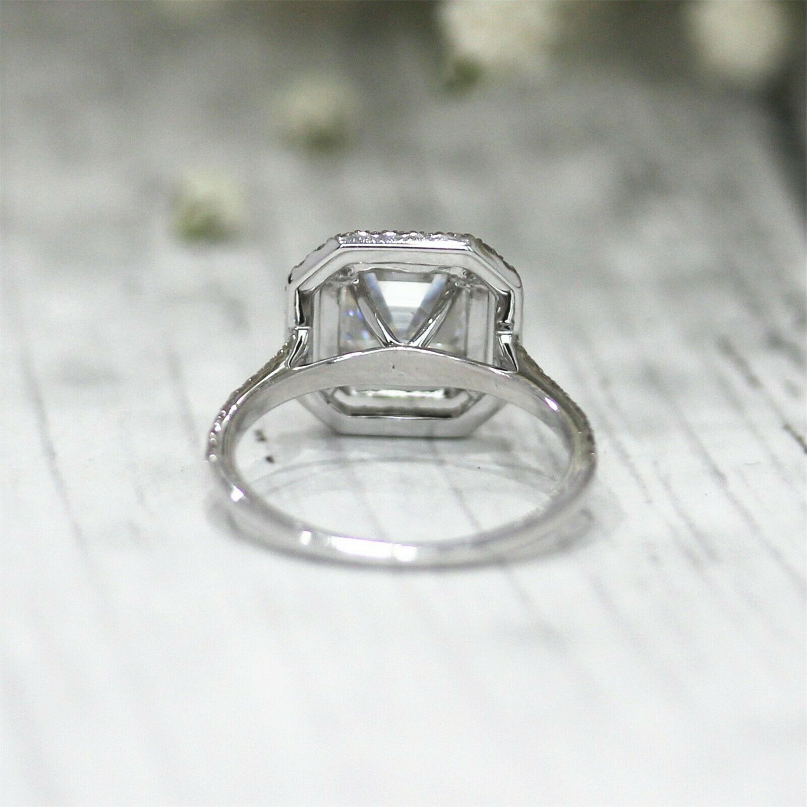3Ct Asscher Cut DVVS1 Diamond Double Halo Engagement Ring 14K White Gold Finish