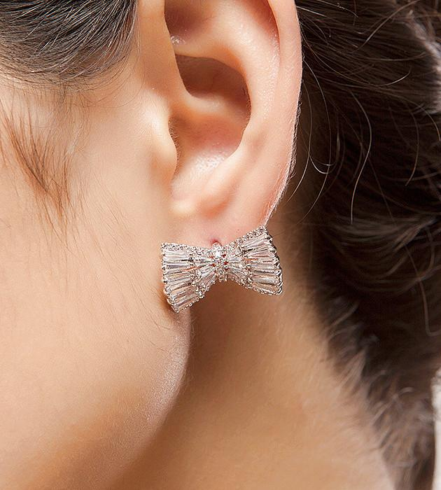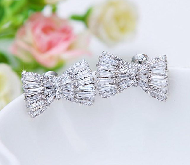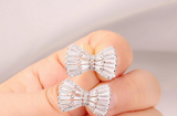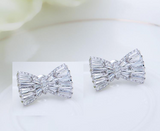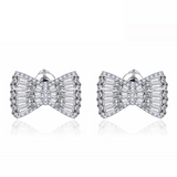 3Ct Baguette Cut Diamond Bow Tie Knot Cluster Stud Earrings 14K White Gold Over