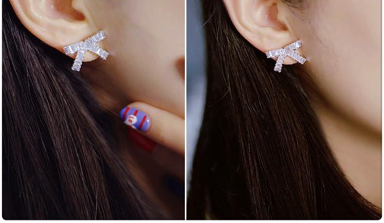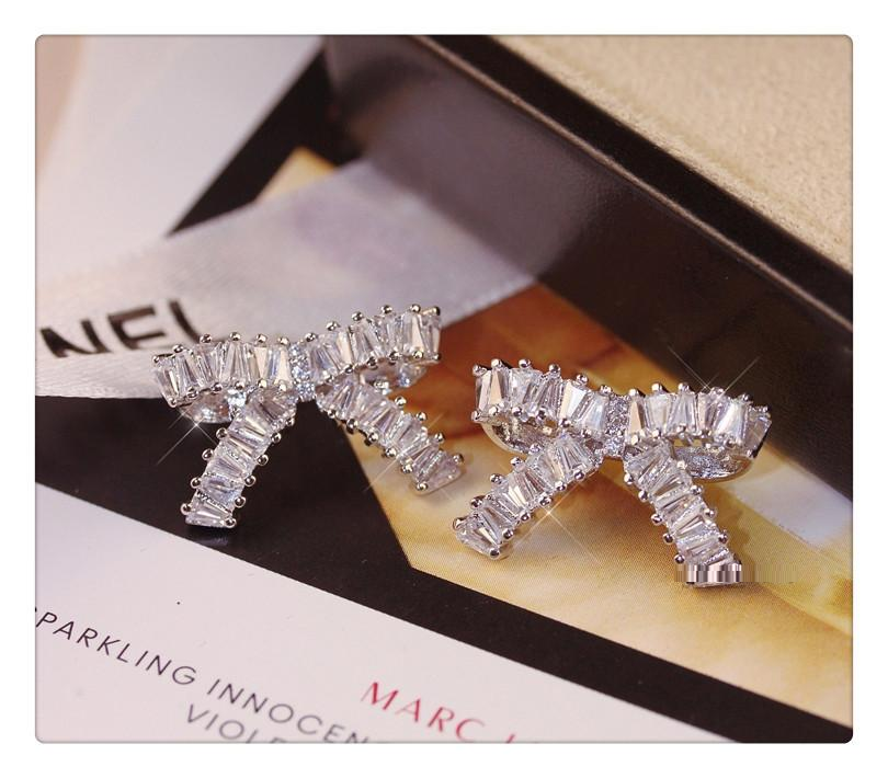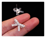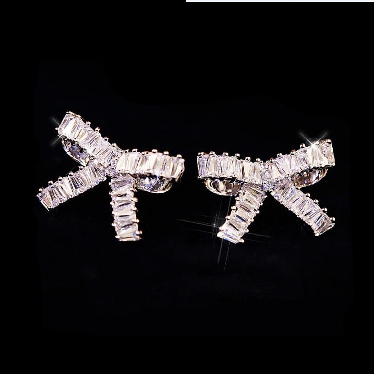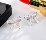 3Ct Baguette Cut Diamond Knot Design Stud Earrings Women 14K White Gold Finish