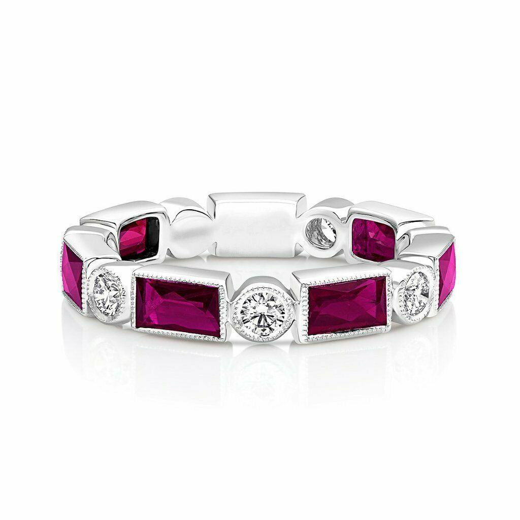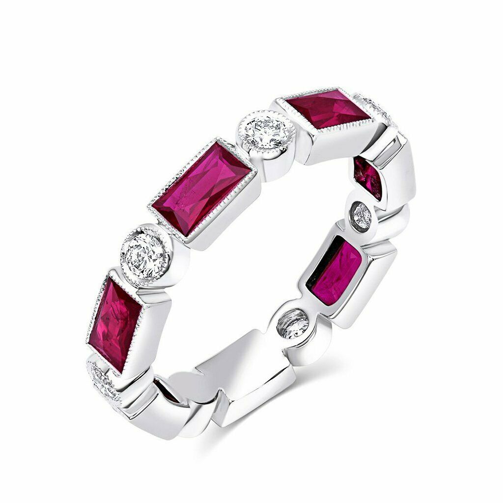 3Ct Baguette Cut Pink Ruby Diamond Eternity Wedding Band 14K White Gold Finish