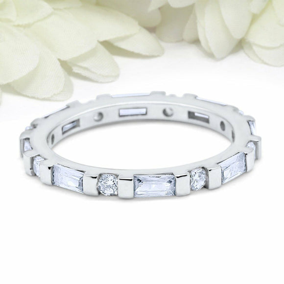3Ct Baguette Round Cut Diamond Eternity Wedding Band 18K White Gold Finish