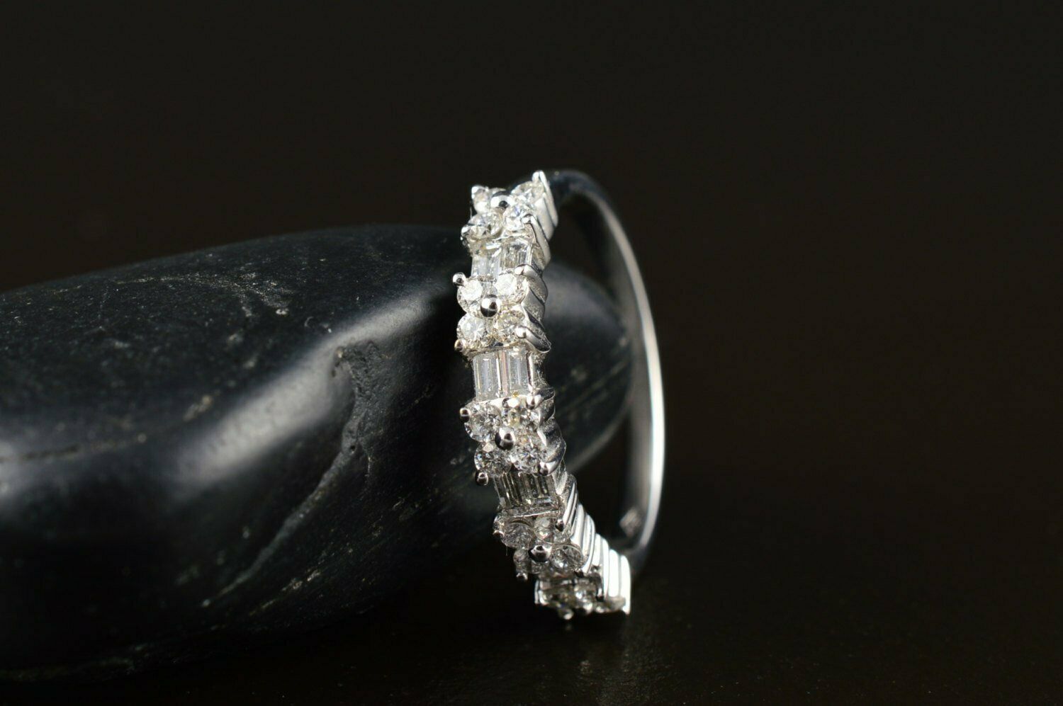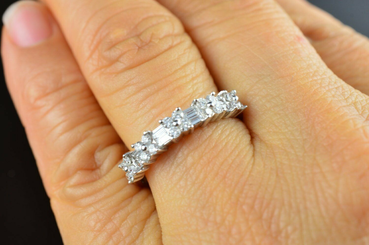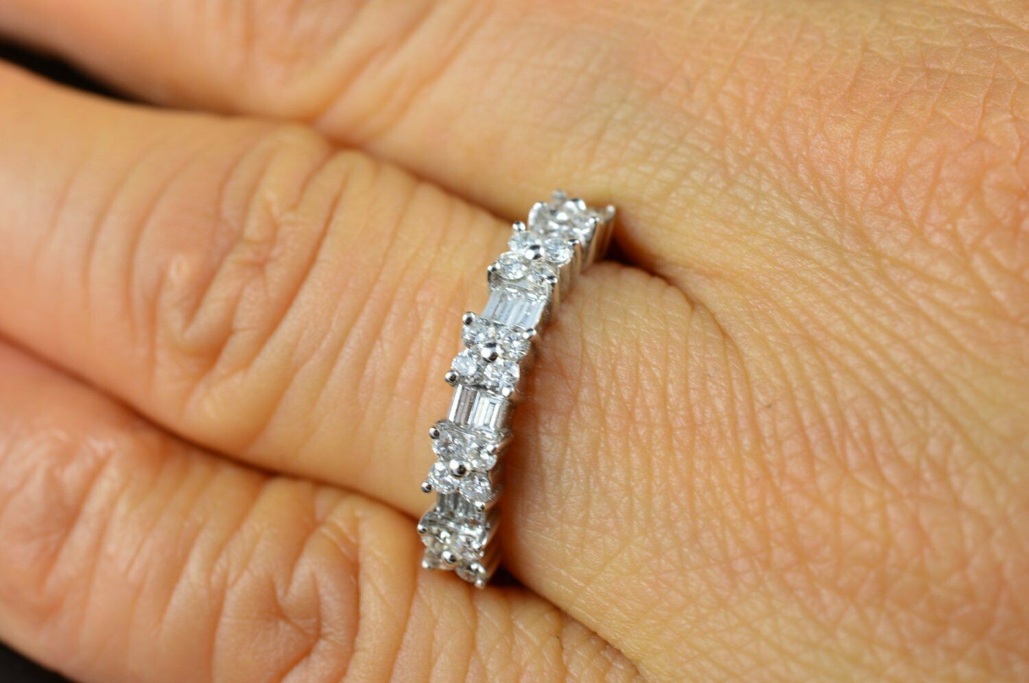 3Ct Baguette Round Cut Diamond Two Row Stylish Band Ring 14K White Gold Finish