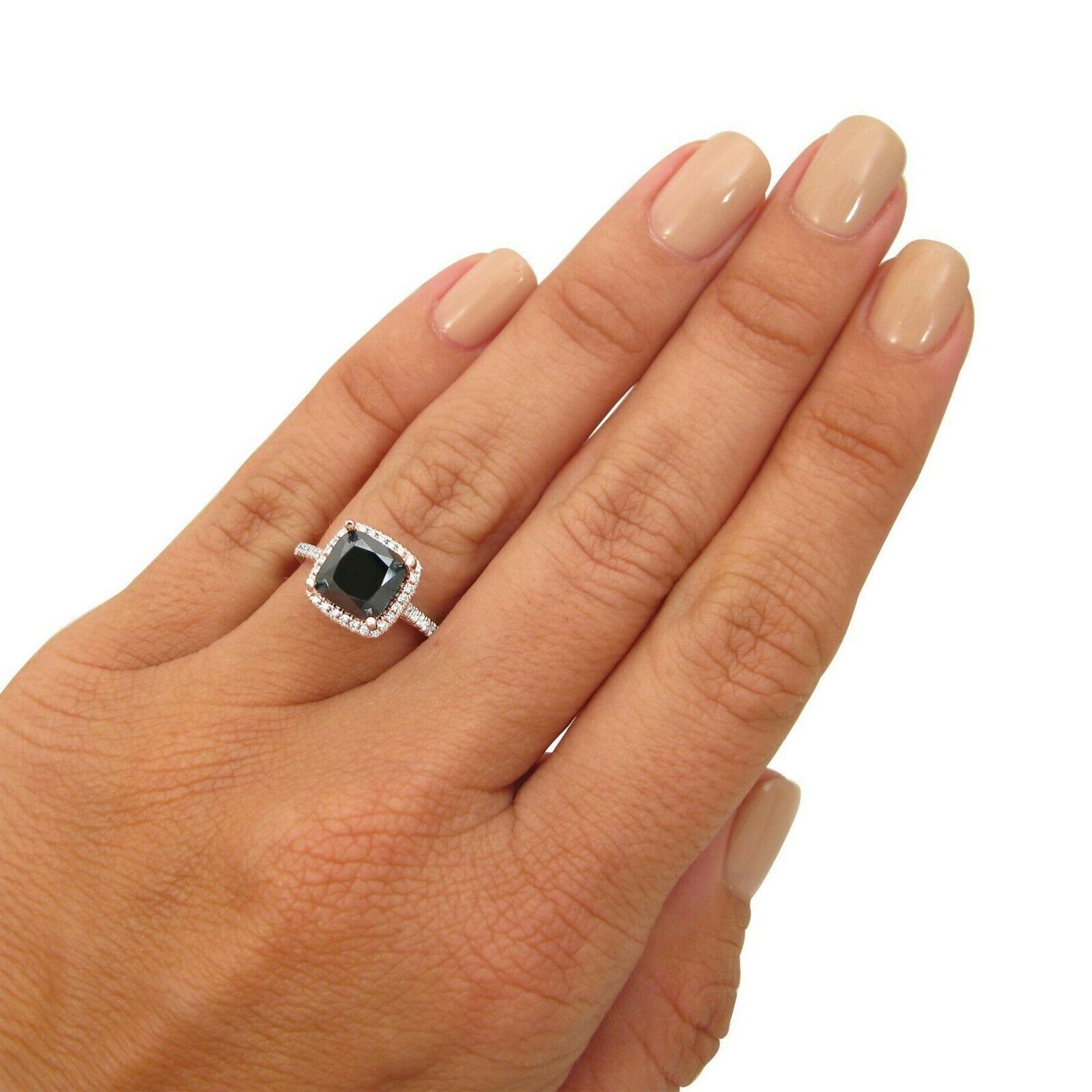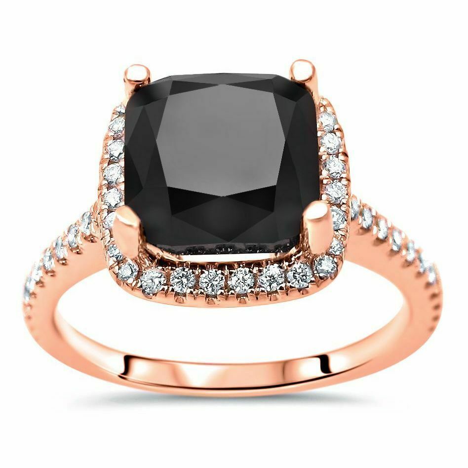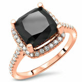 3Ct Cushion Cut Black Diamond Engagement Ring 14K Rose Gold Finish Round Accent