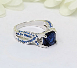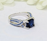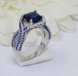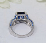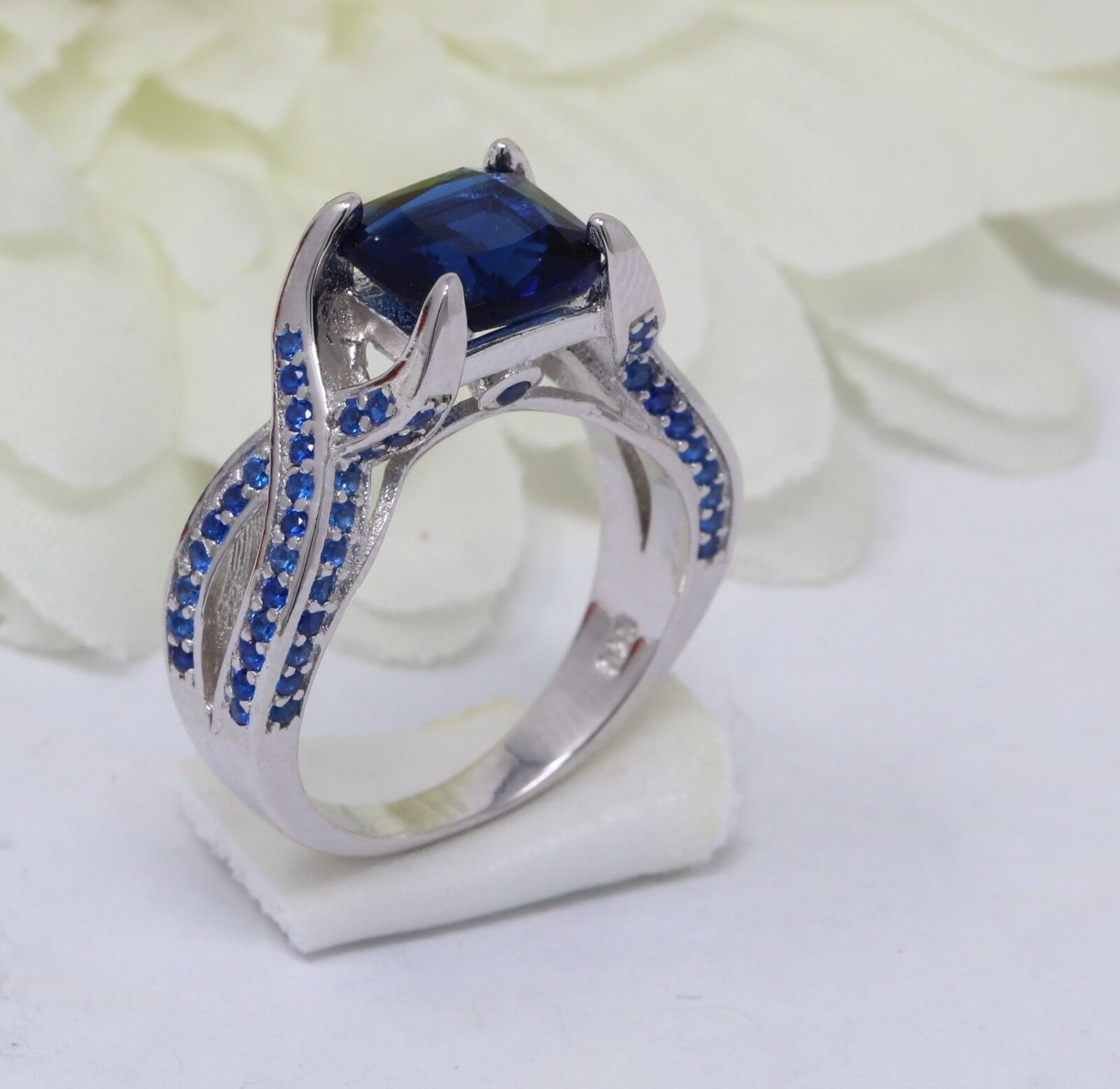3Ct Cushion Cut Blue Sapphire Reverse Split Shank Ring 14K White Gold Finish
