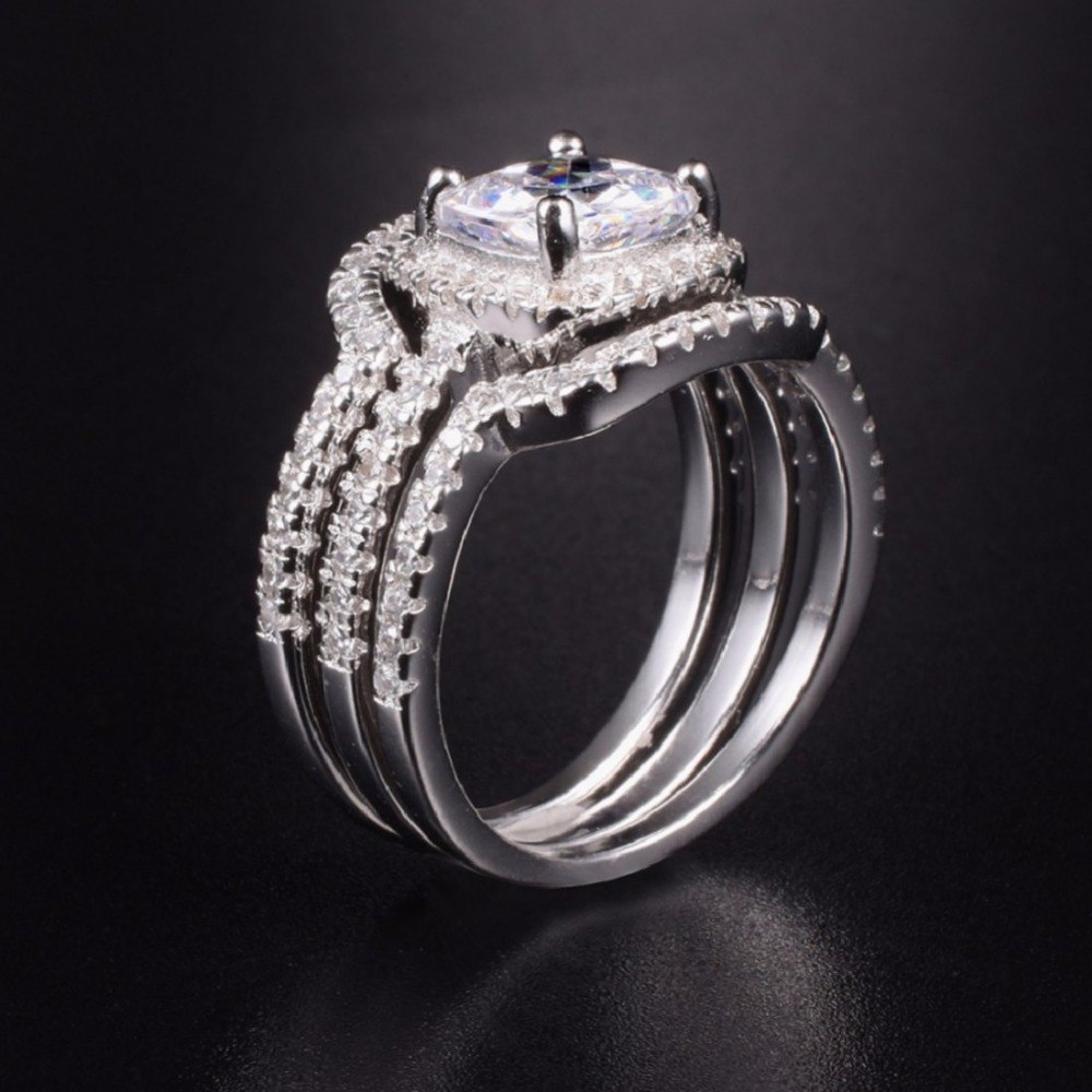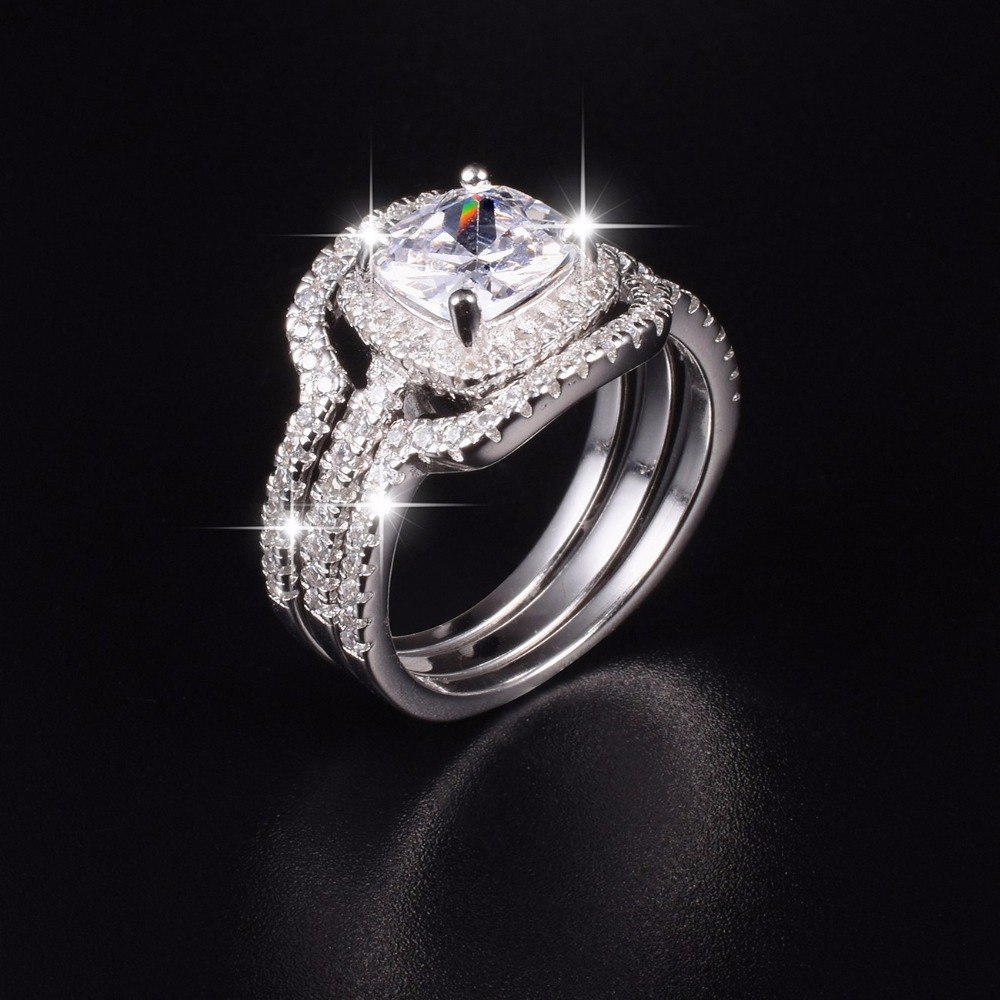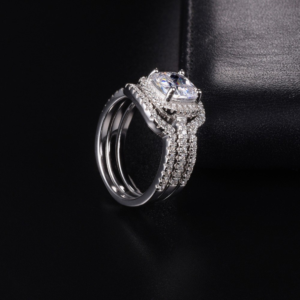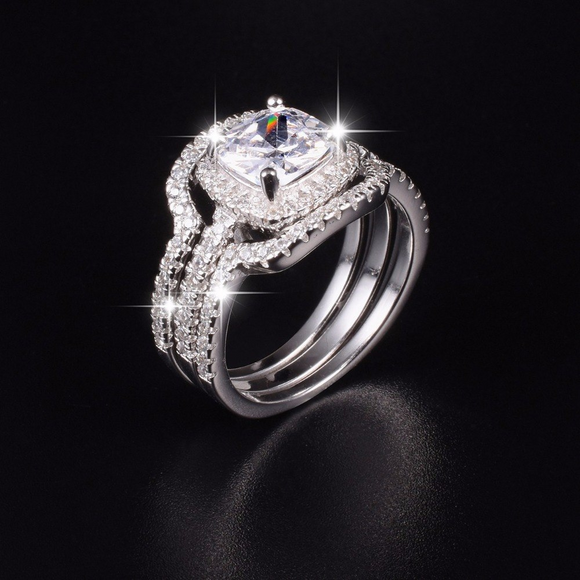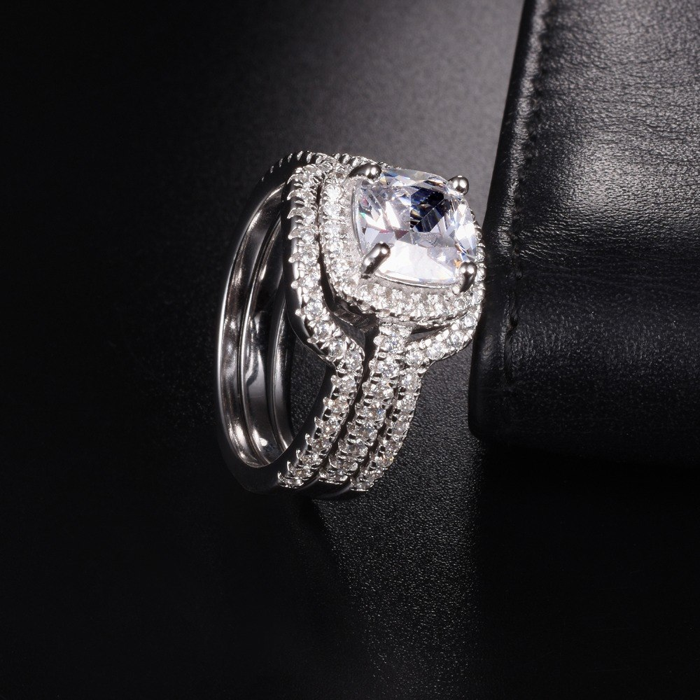 3ct Cushion Cut Diamond Engagement Ring 14k White Gold Finish Trio Set for Women