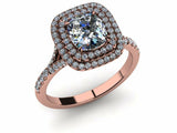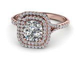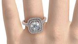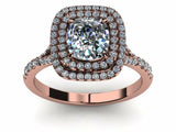 3ct Cushion Cut Halo Cluster Solitaire Engagement Ring 14k Rose Gold Finish