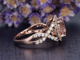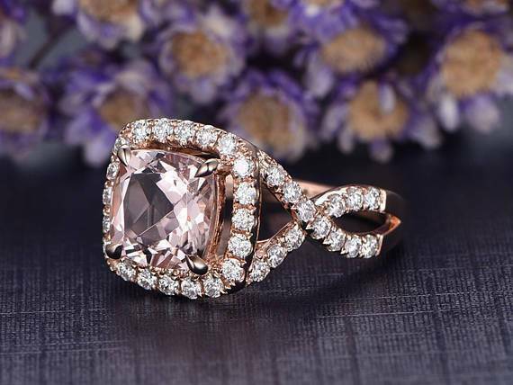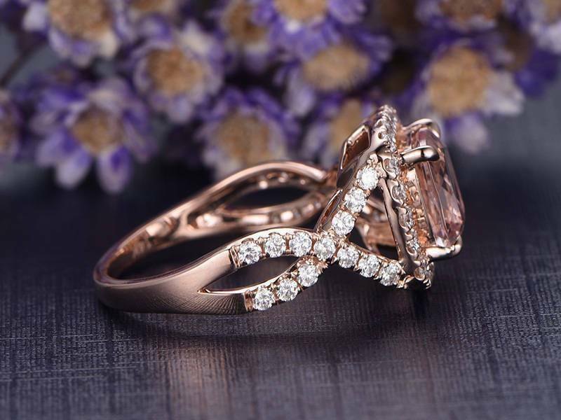 3ct Cushion Cut Peach Morganite Engagement Ring 14k RoseGold Finish Halo Wedding