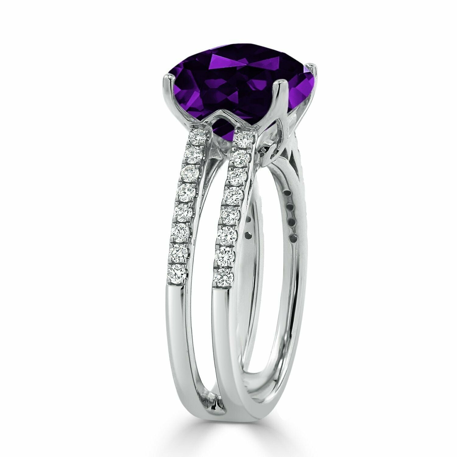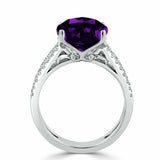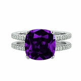 3Ct Cushion Cut Purple Amethyst Dual Band Engagement Ring 14K White Gold Finish
