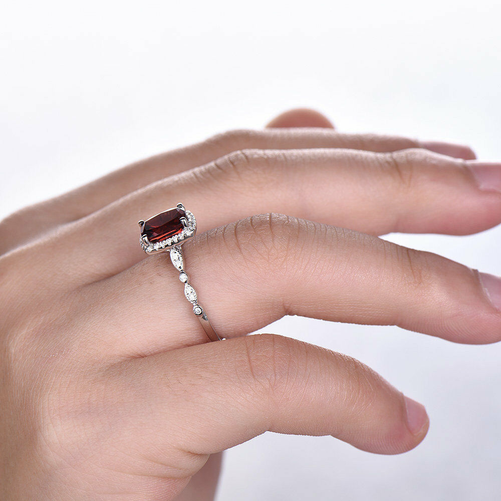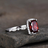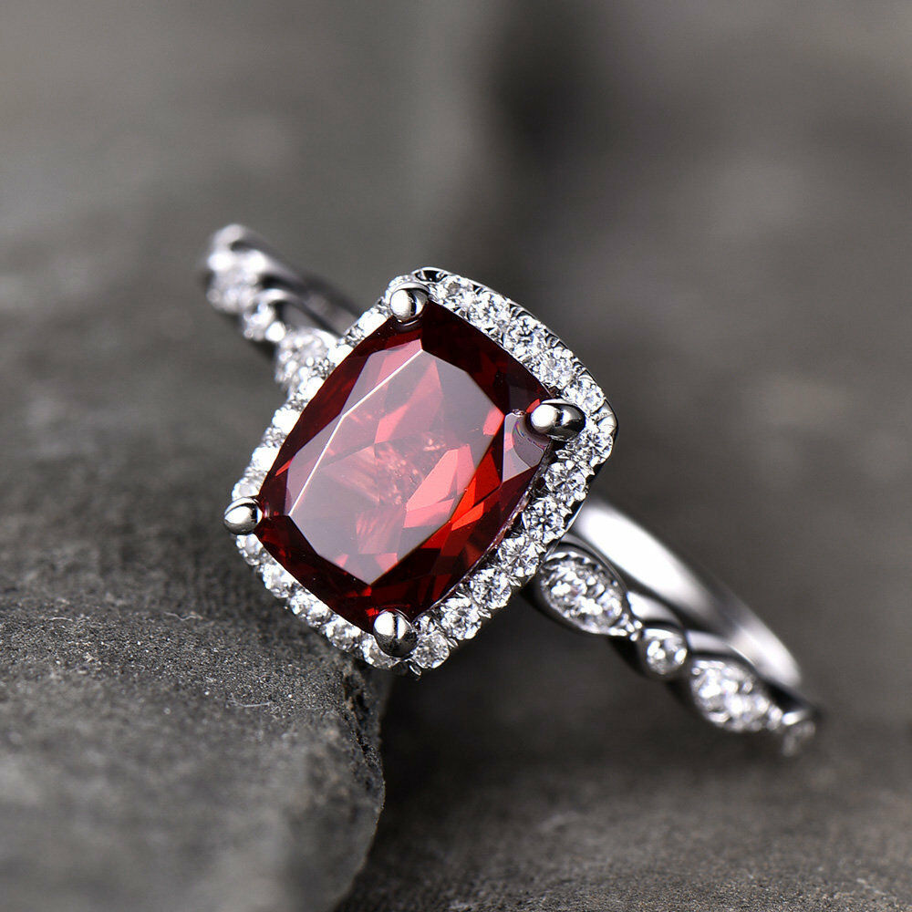 3ct Cushion Cut Red Garnet Vintage Solitaire Engagement Ring 14k White Gold Over