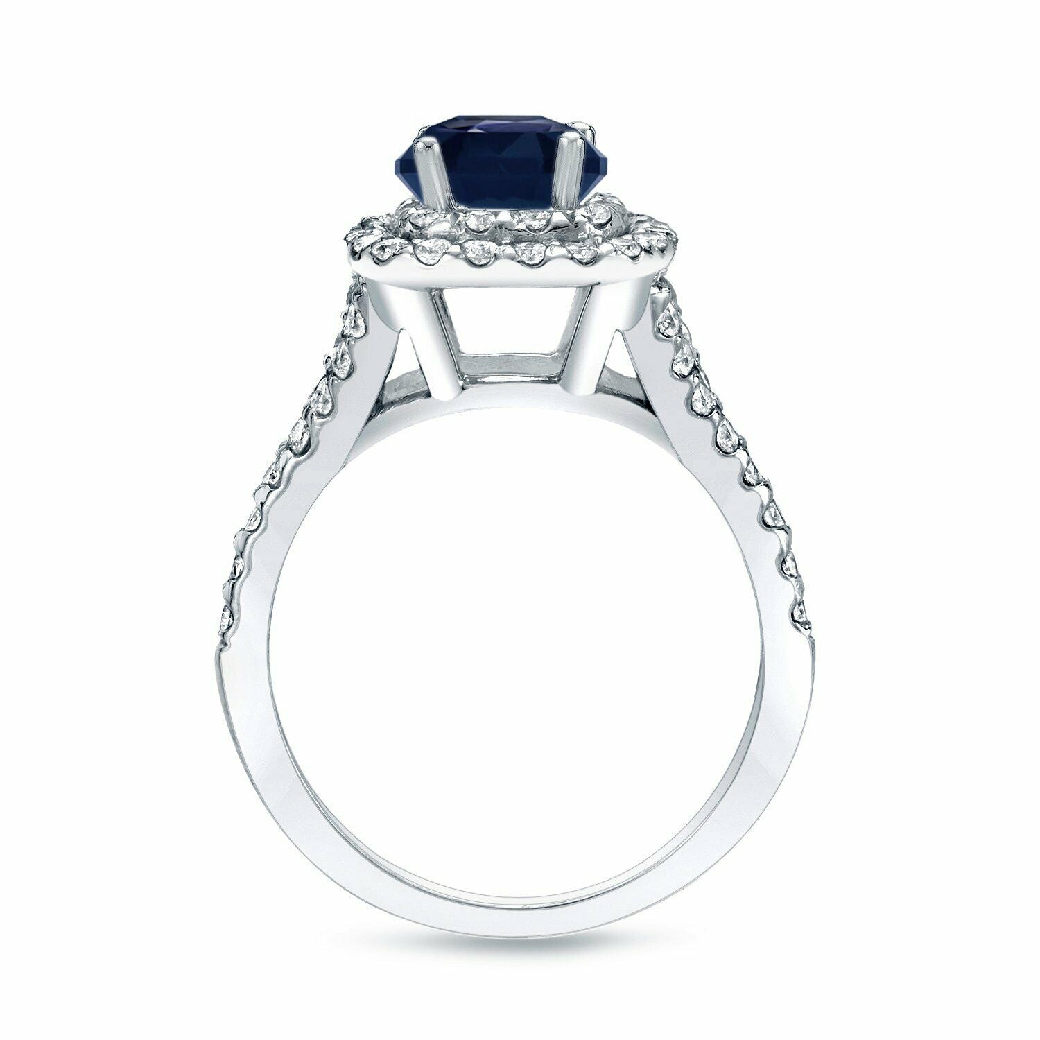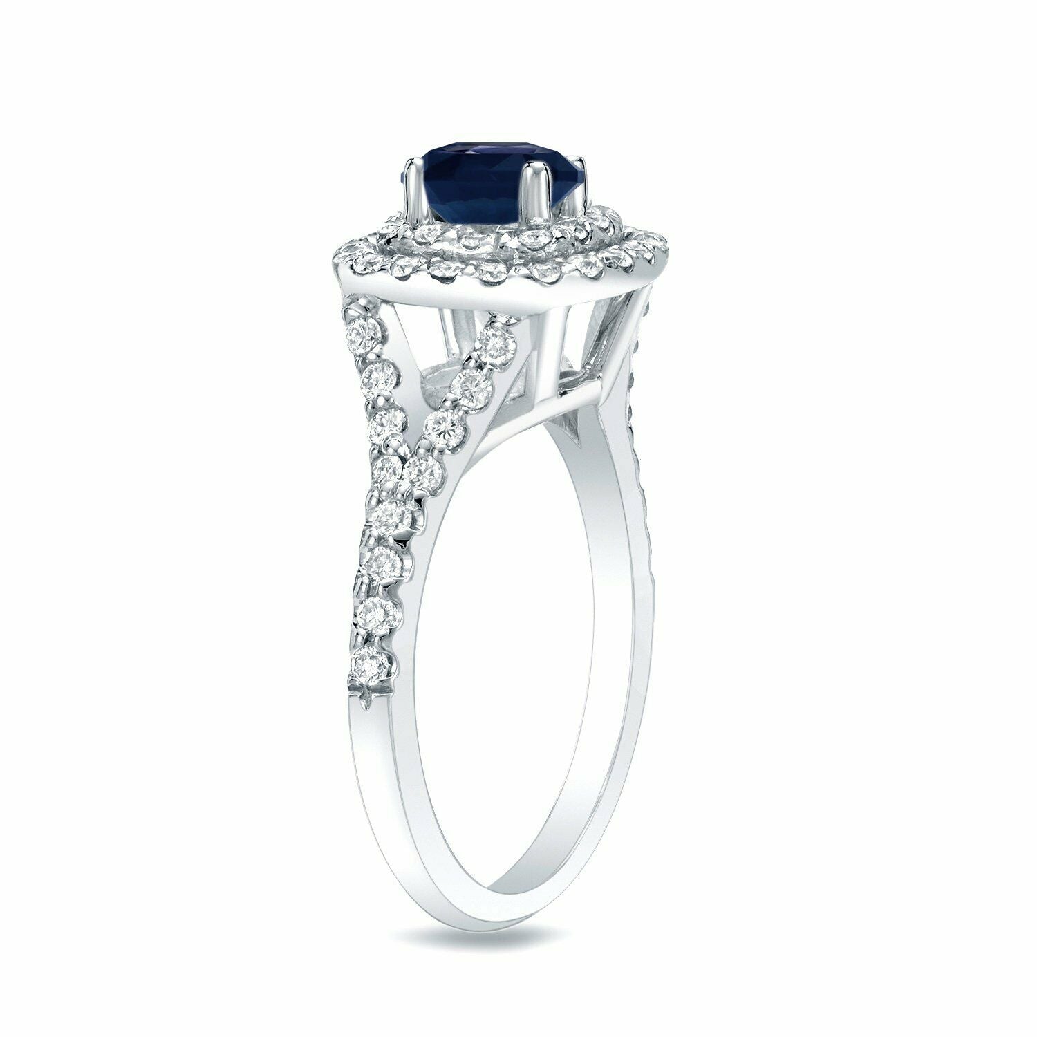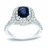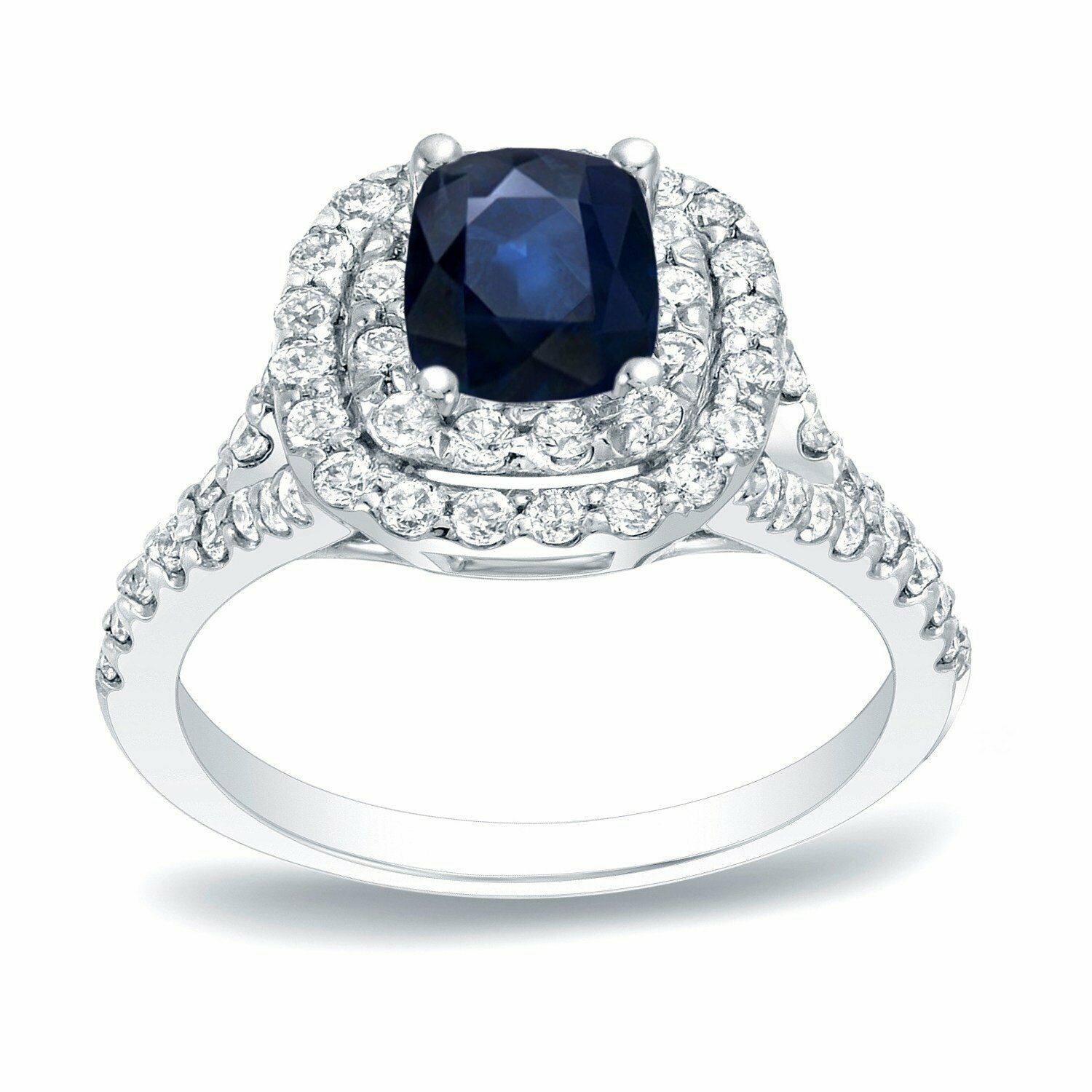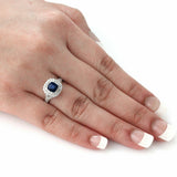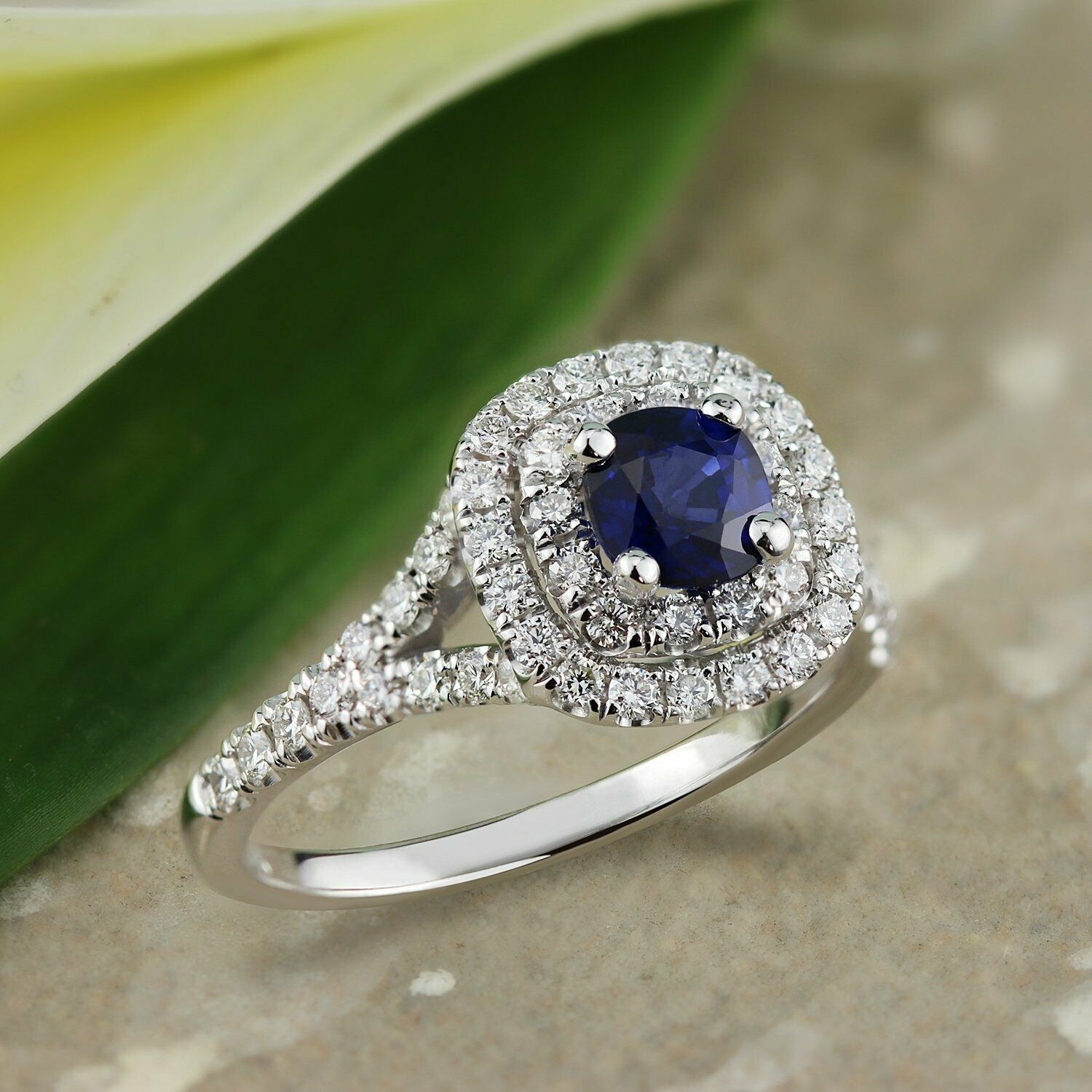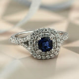 3Ct Cushion Cut Sapphire Diamond Dual Halo Engagement Ring 14K White Gold Finish