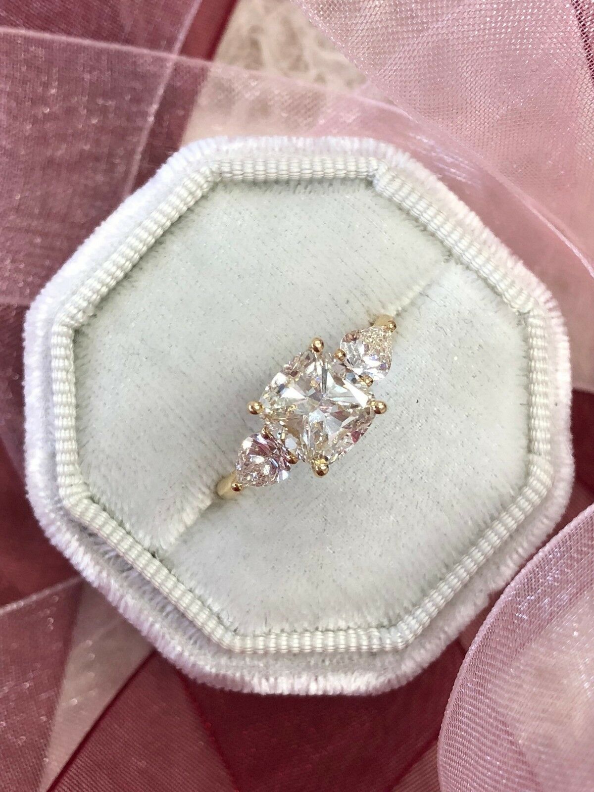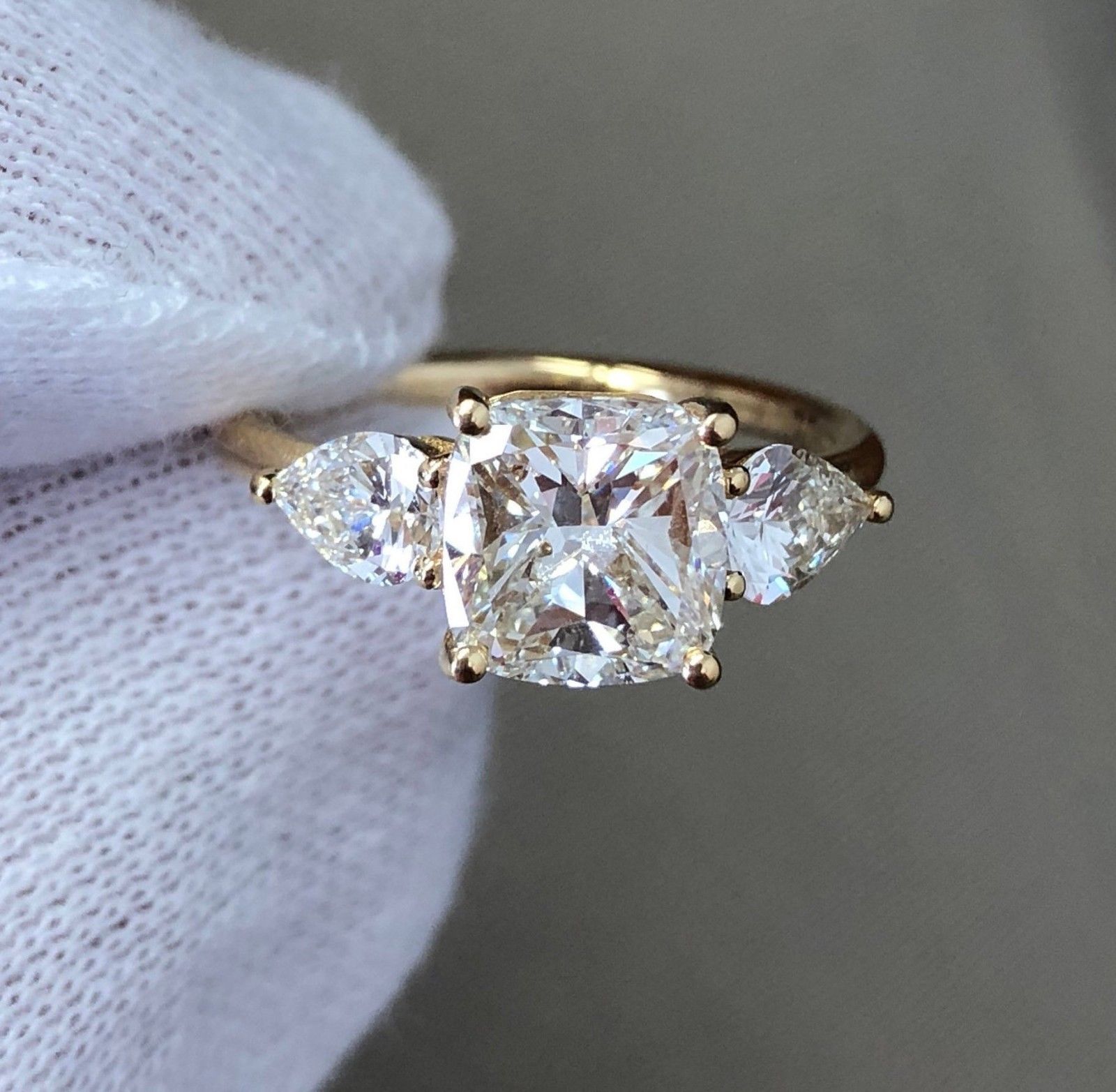 3ct Cushion Pear Diamond Accent Trilogy Engagement Ring 14k Yellow Gold Finish