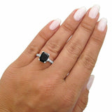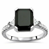 3Ct Emerald Cut Black Diamond Trillion Accent Solitaire Ring 14K White Gold Over