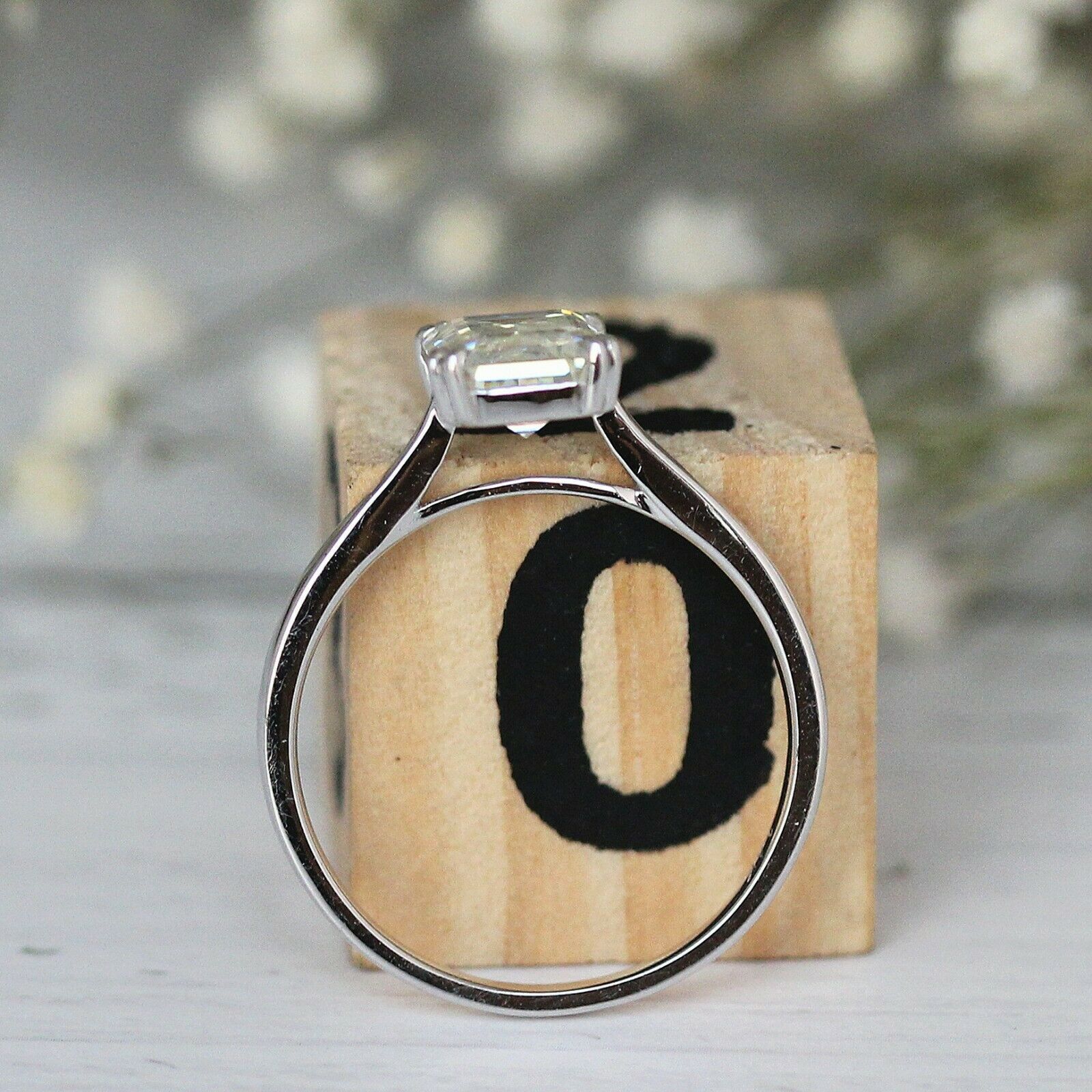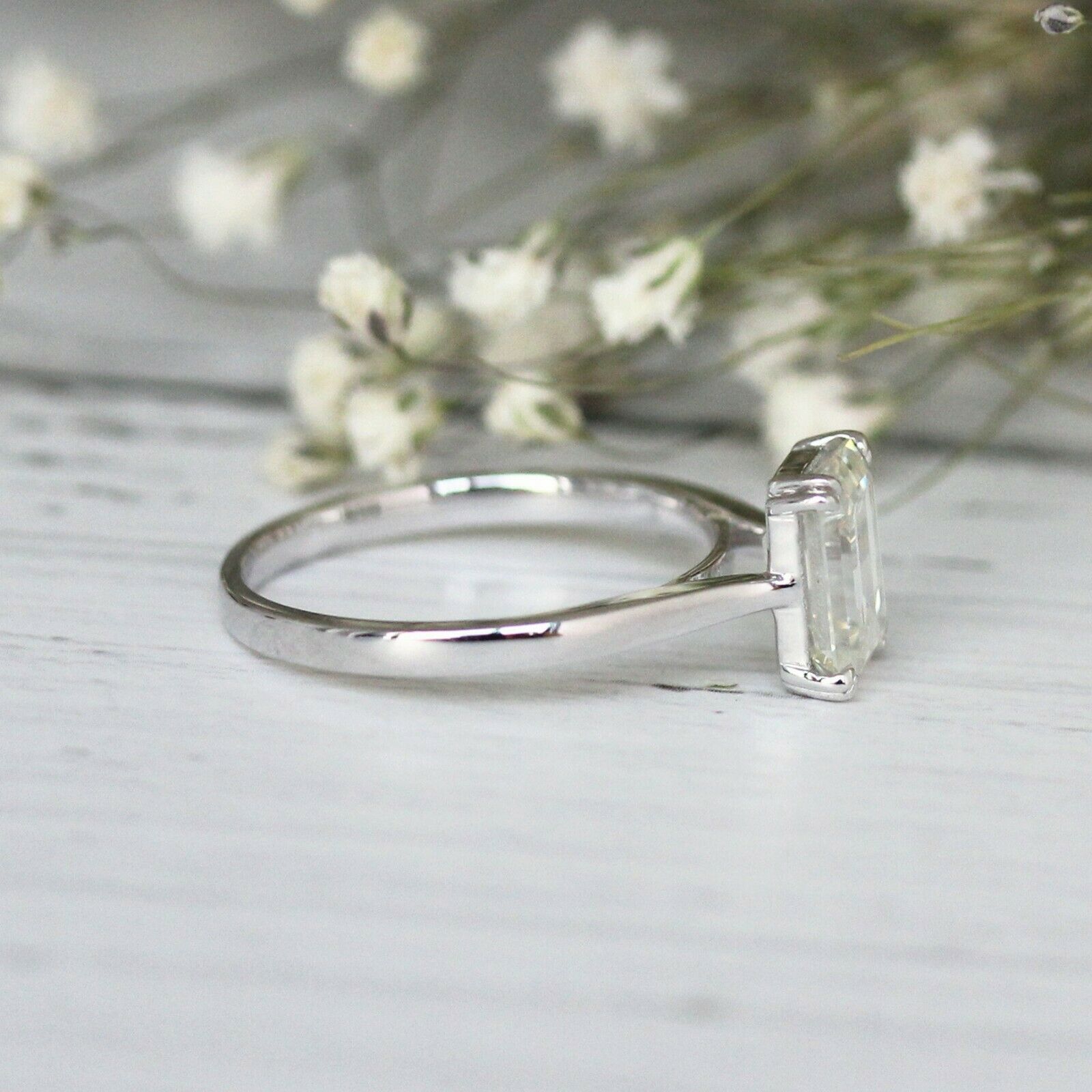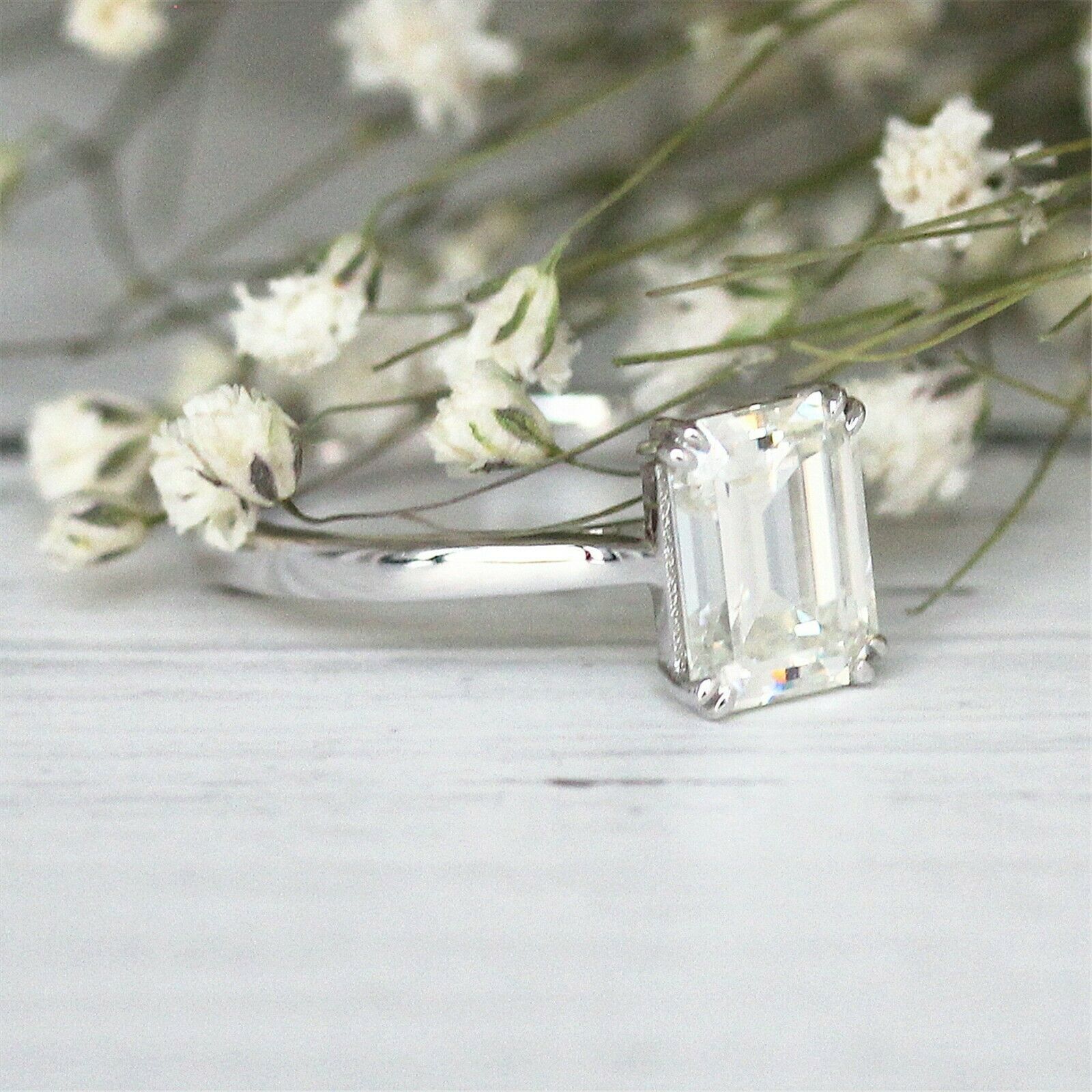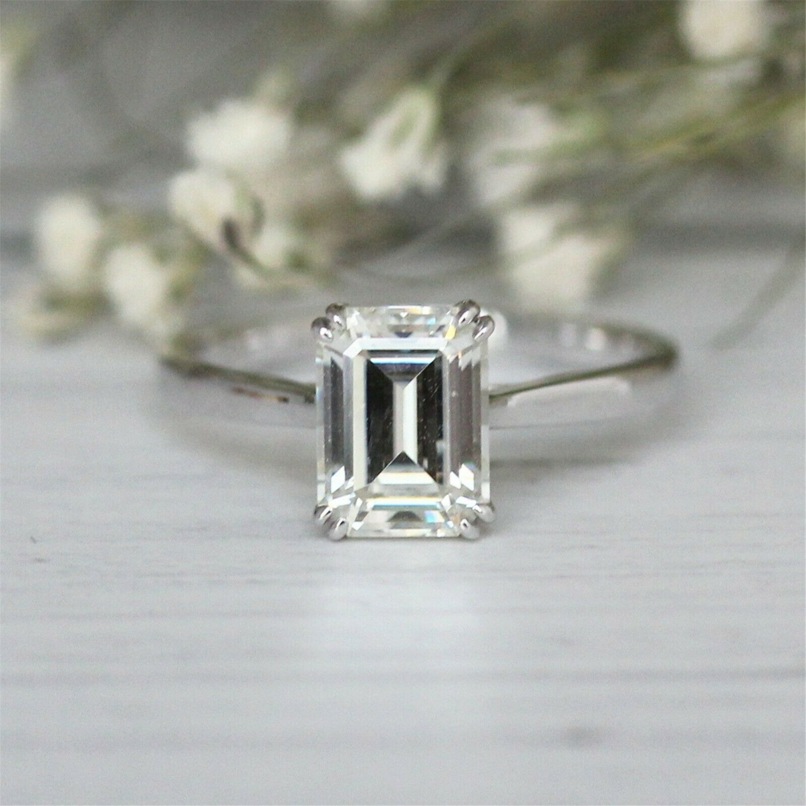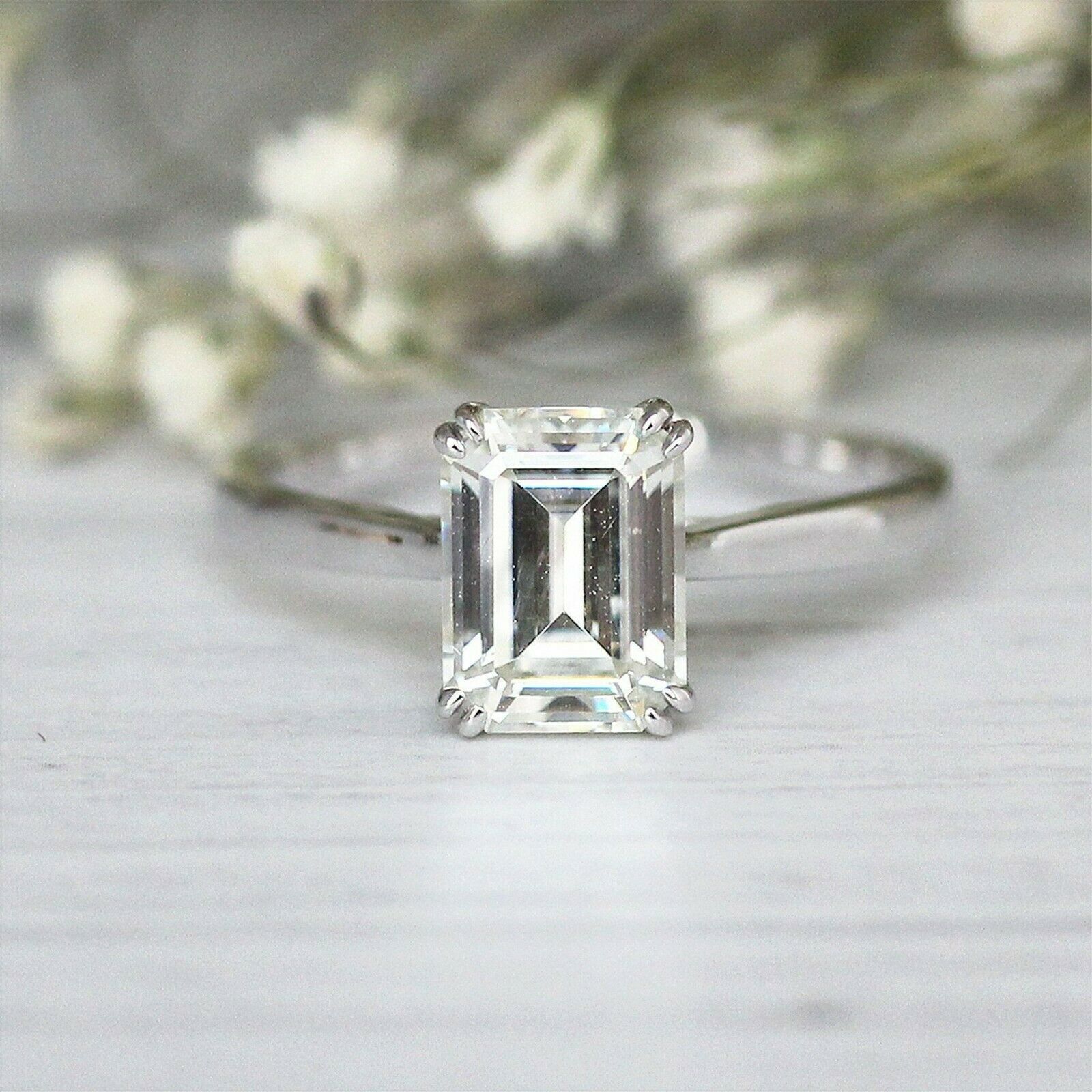 3Ct Emerald Cut Diamond Dual Claw Solitaire Engagement Ring 14K White Gold Over