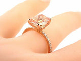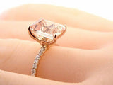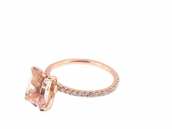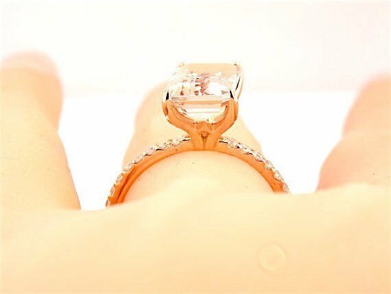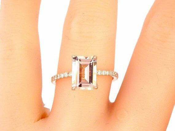 3Ct Emerald Cut Peach Morganite Diamond Accent Solitaire Ring 18K Rose Gold Over