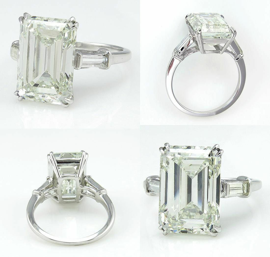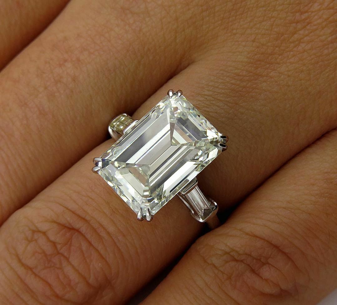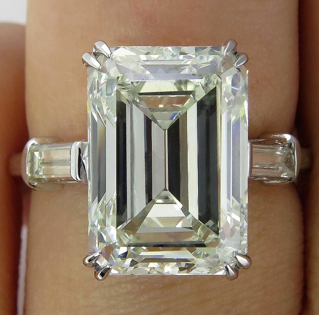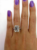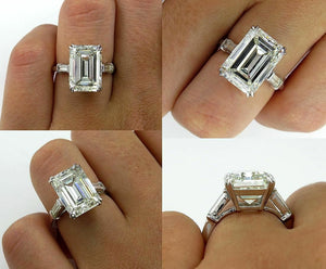 3Ct Emerald Diamond Trilogy Engagement Ring 18K White Gold Over Baguette Accent