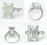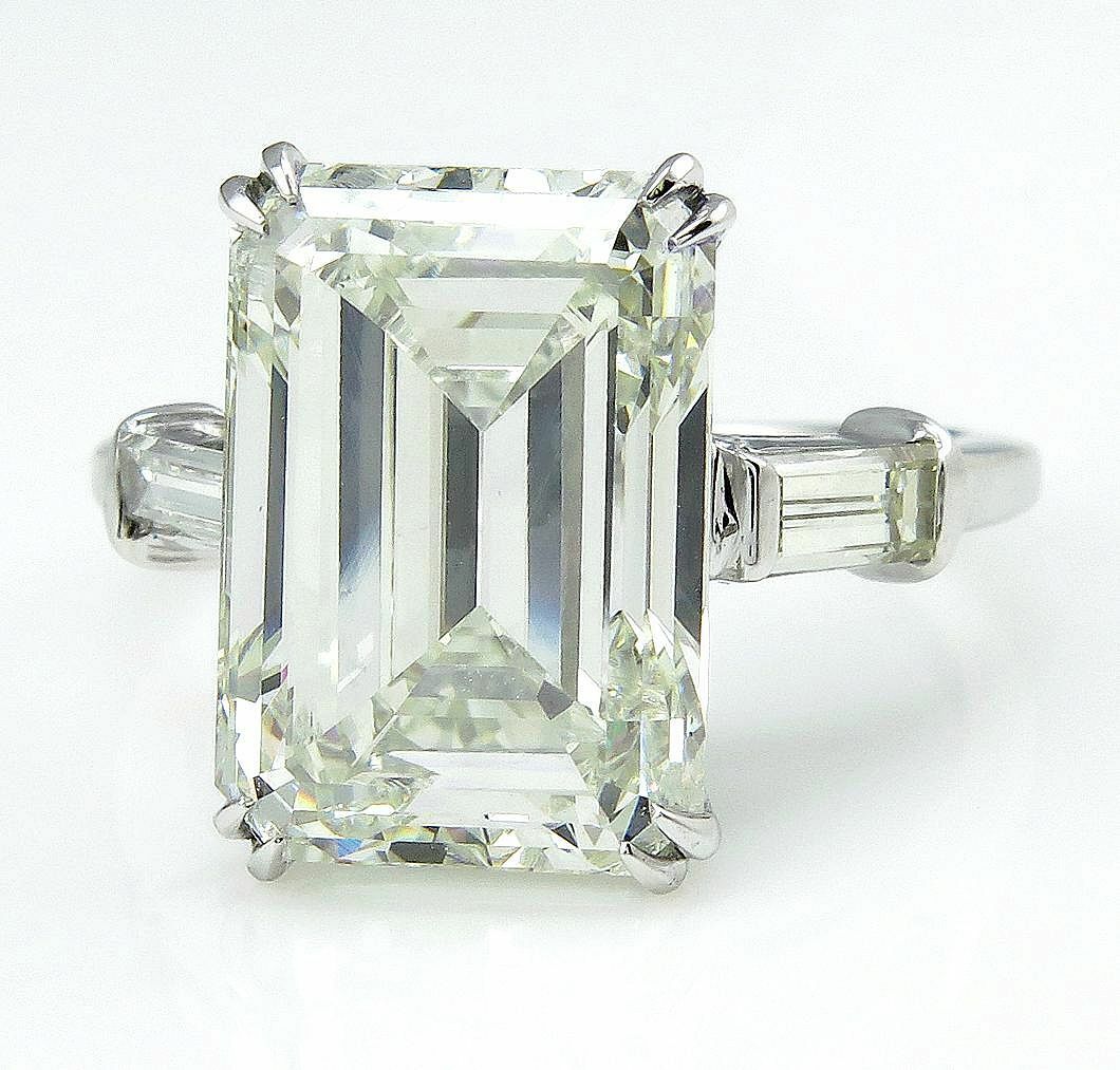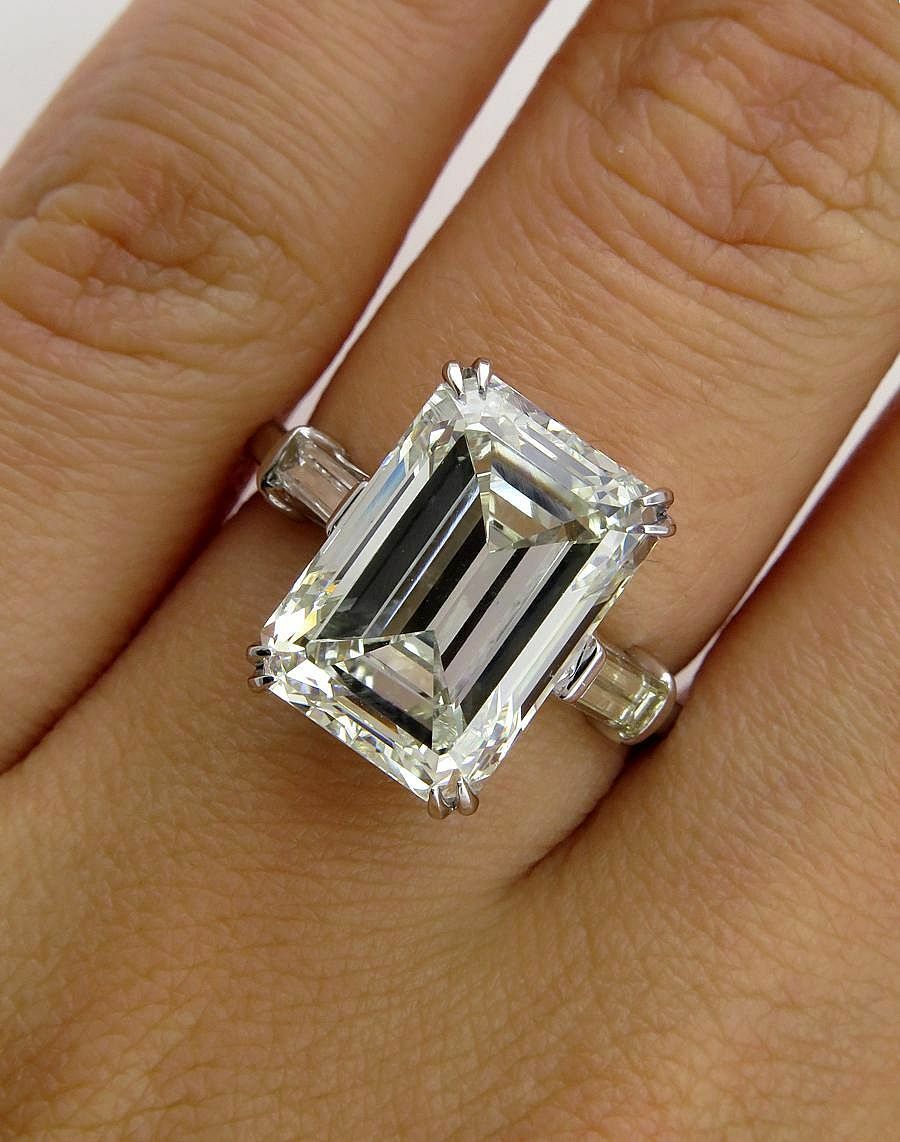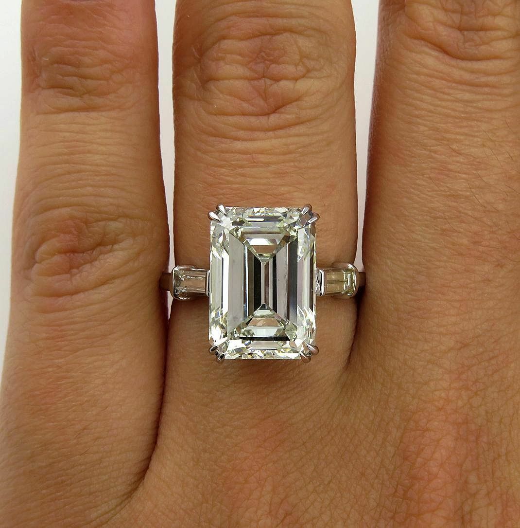 3Ct Emerald Diamond Trilogy Engagement Ring 18K White Gold Over Baguette Accent