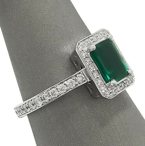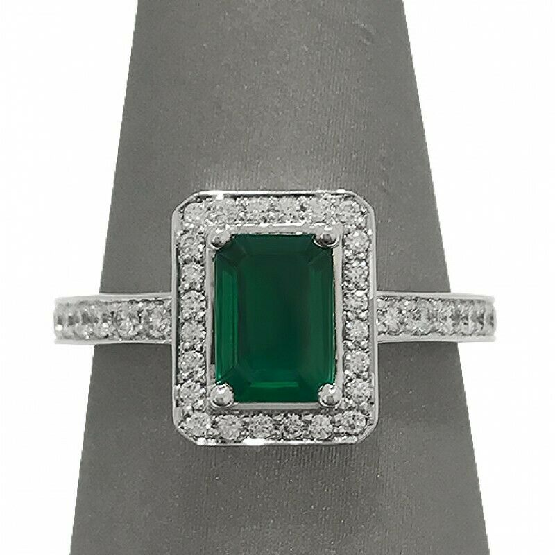 3Ct Green Emerald Vintage Diamond Accents Halo Engage Ring 14K White Gold Finish