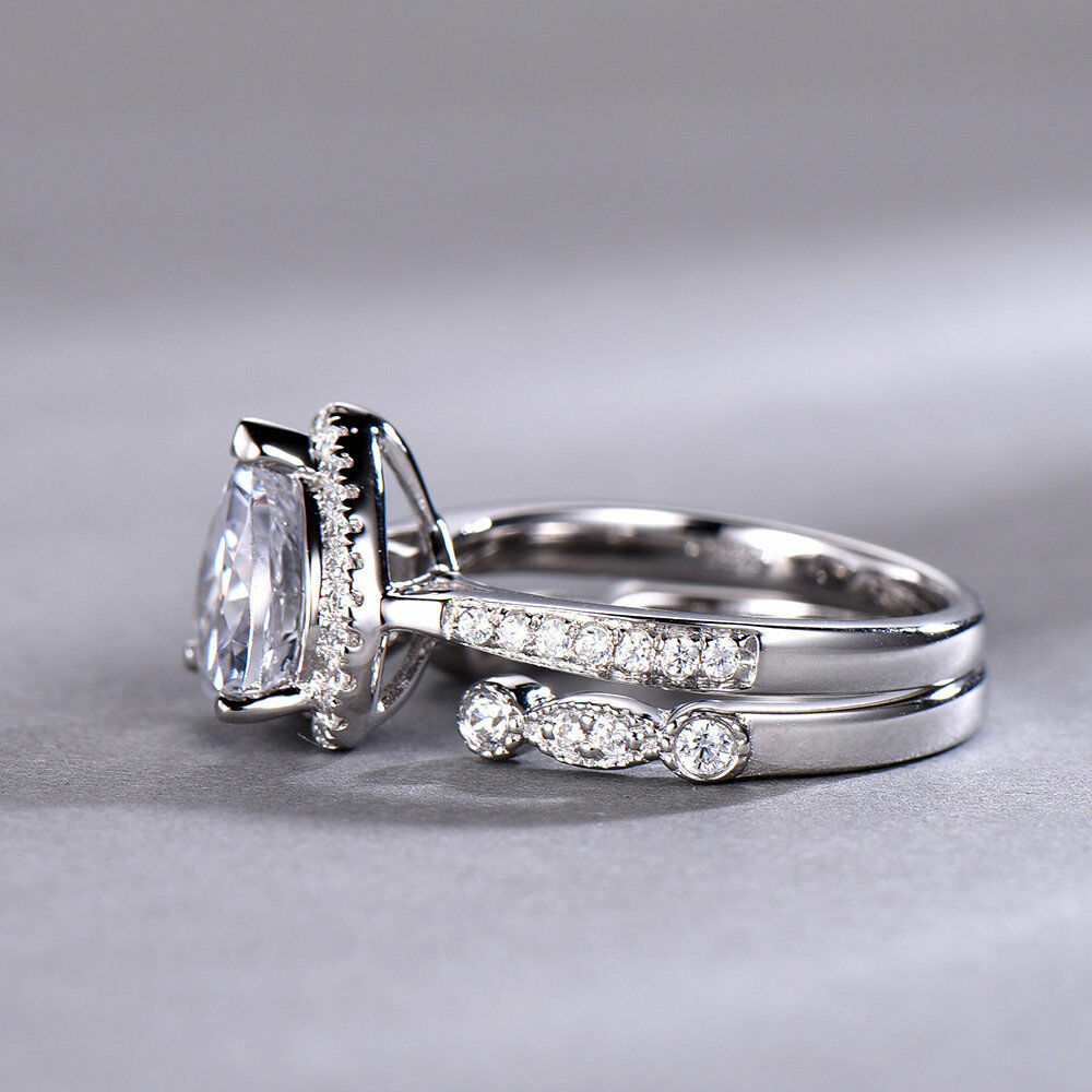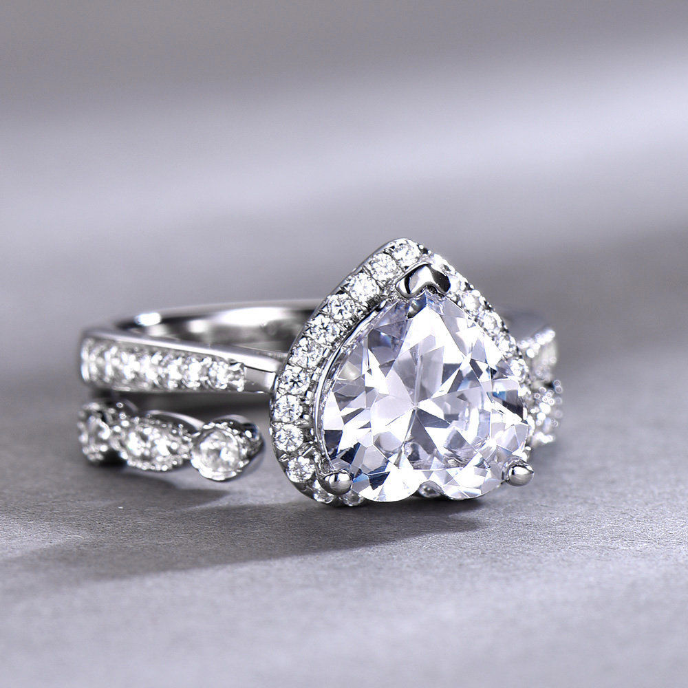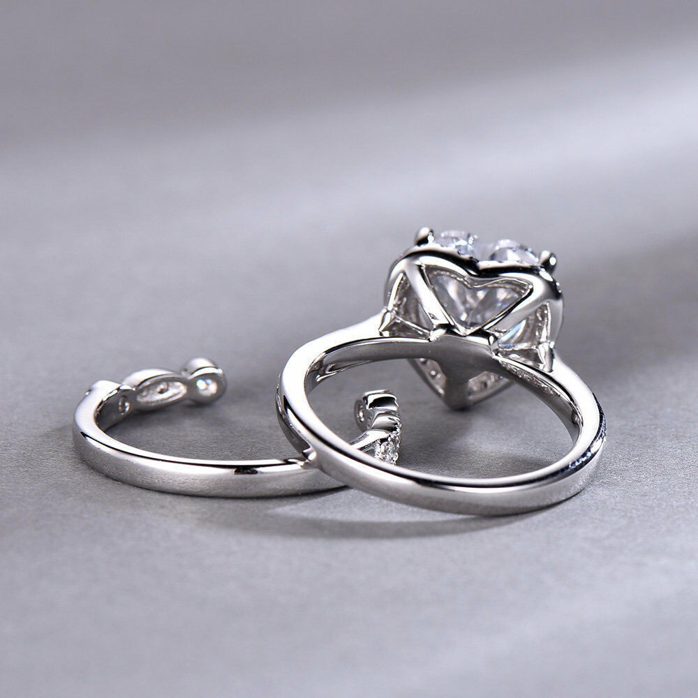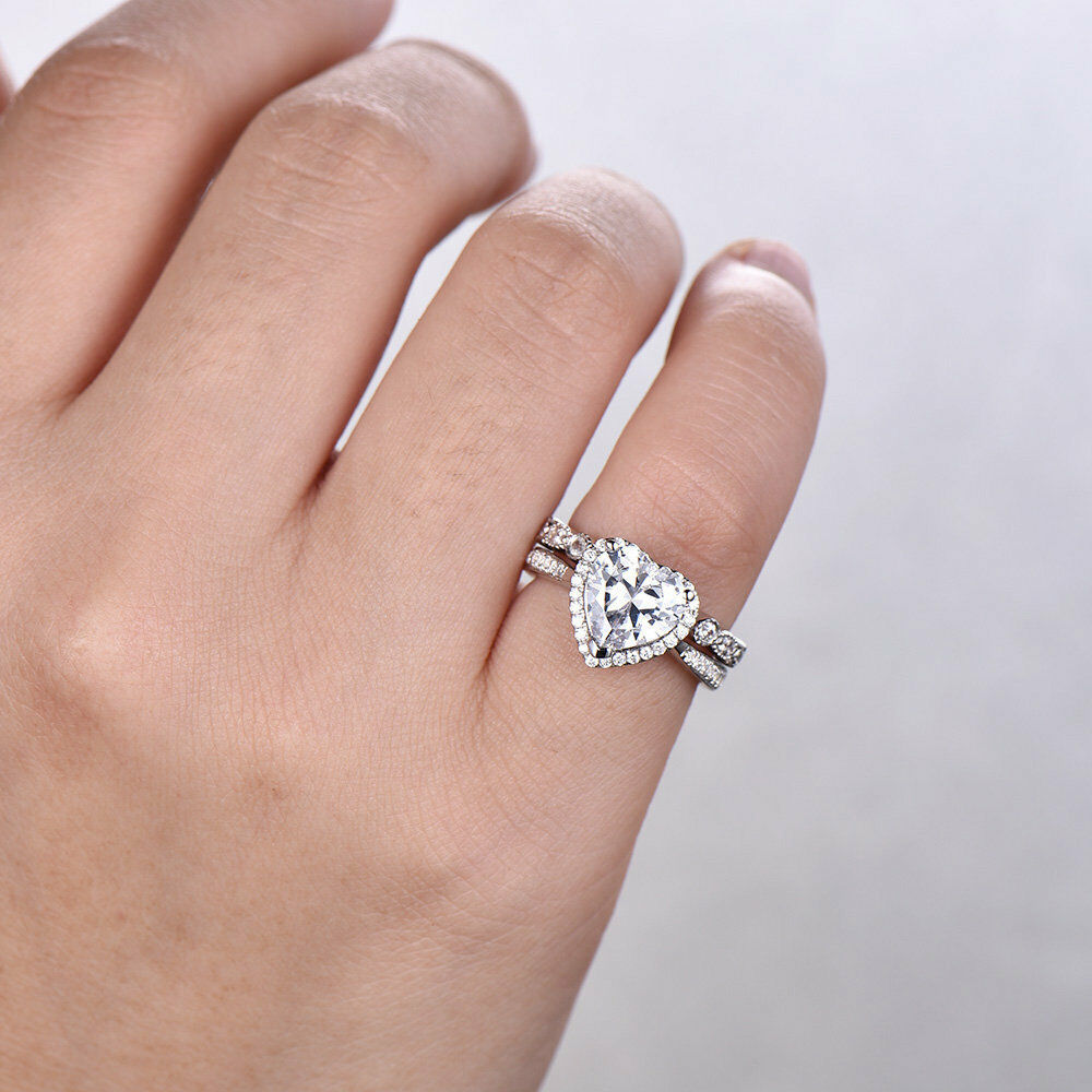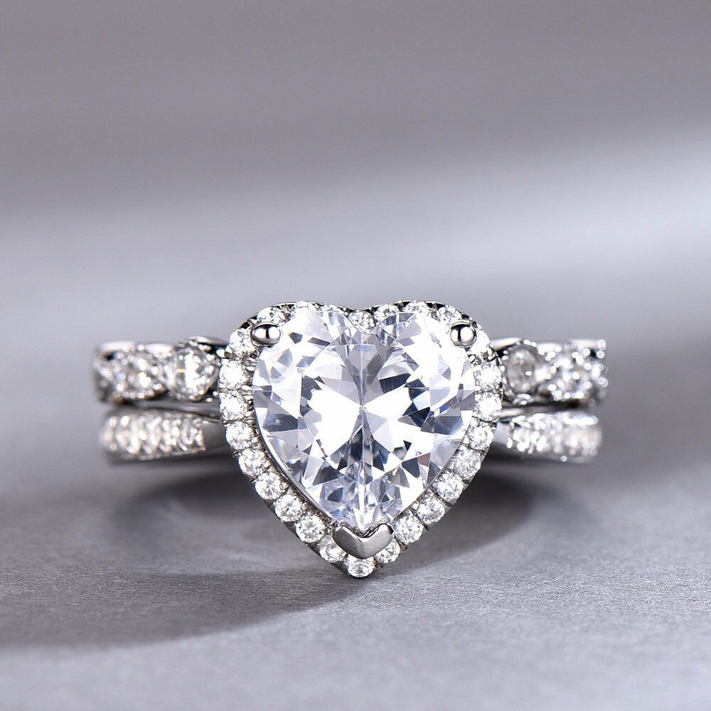 3ct Heart Cut Diamond Vintage Bridal Wedding Set Band Ring 14k White Gold Finish