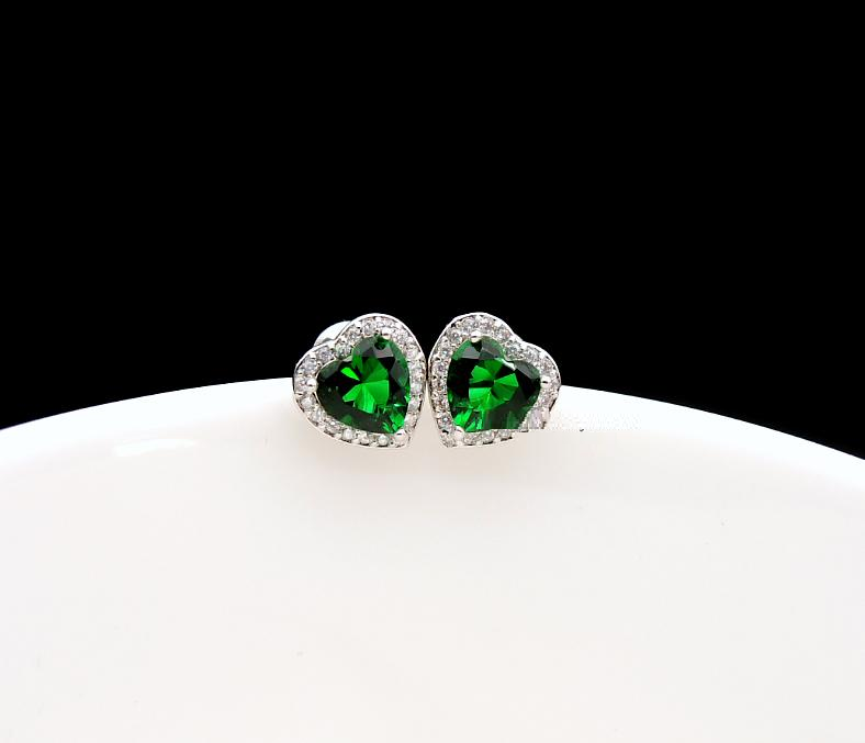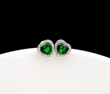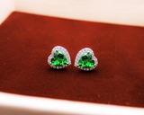 3Ct Heart Cut Green Emerald Love Halo Solitaire Stud Earring 14K White Gold Over