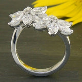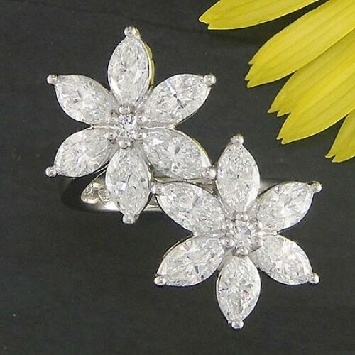 3ct Marquise Cut Diamond Flower Design Engagement Ring 14k White Gold Finish