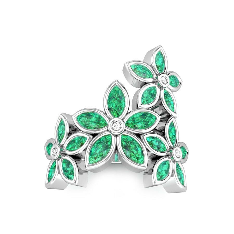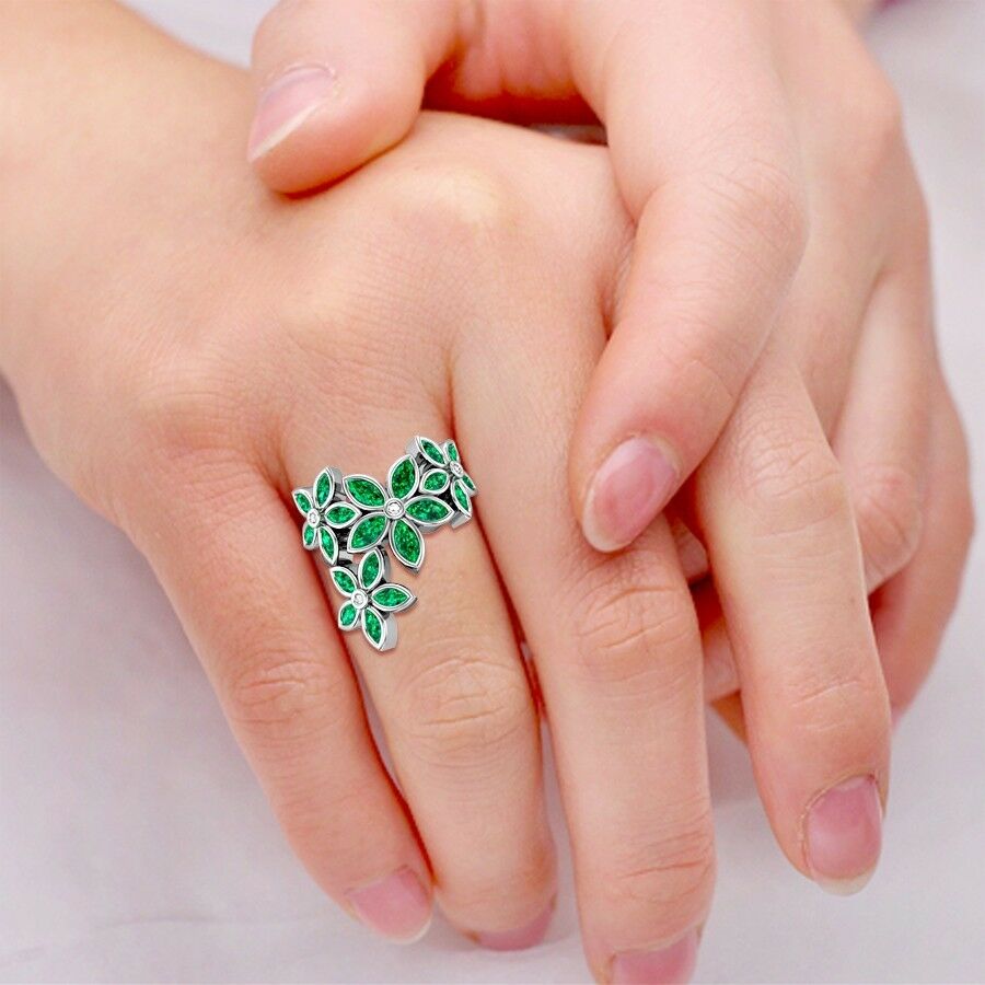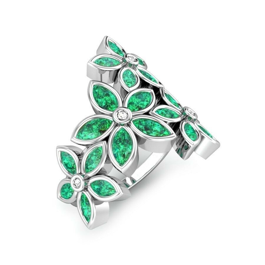3Ct Marquise Cut Green Emerald Engagement Floral Cocktail Ring White Gold Finish