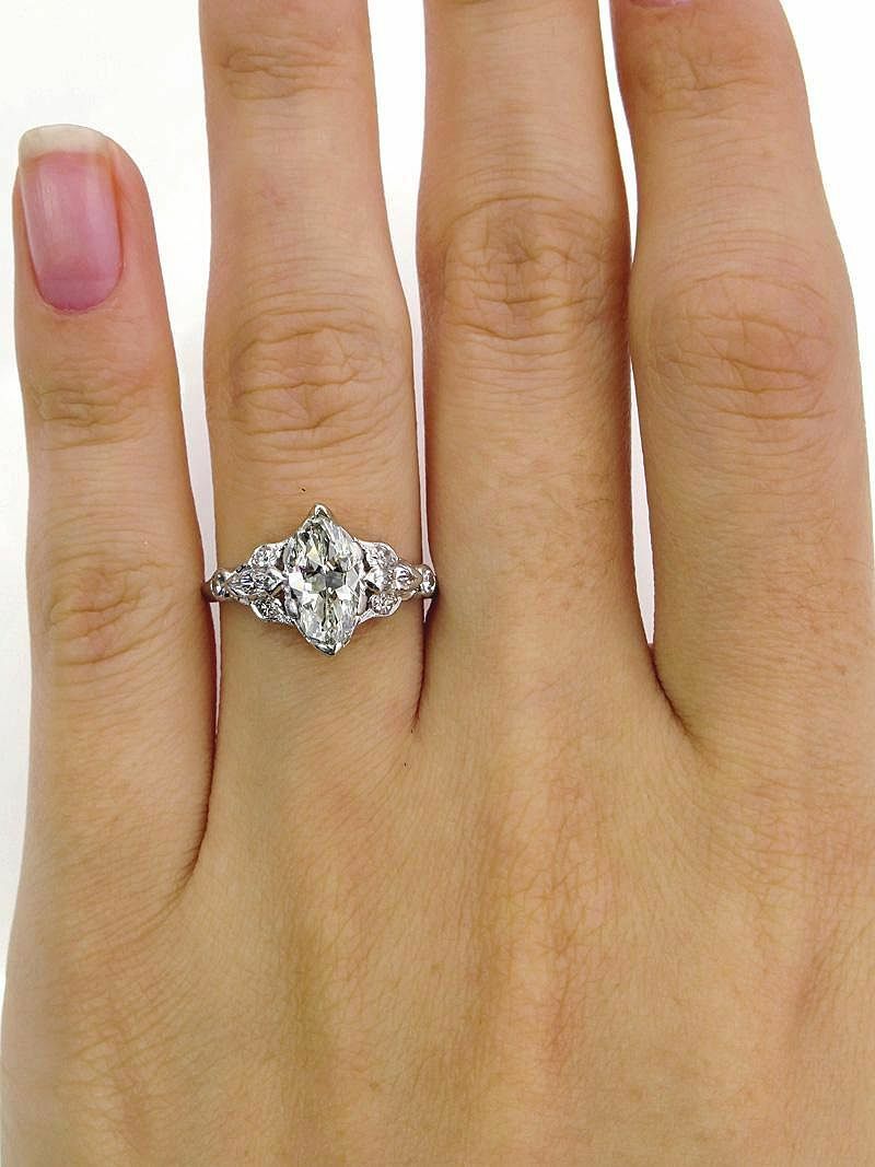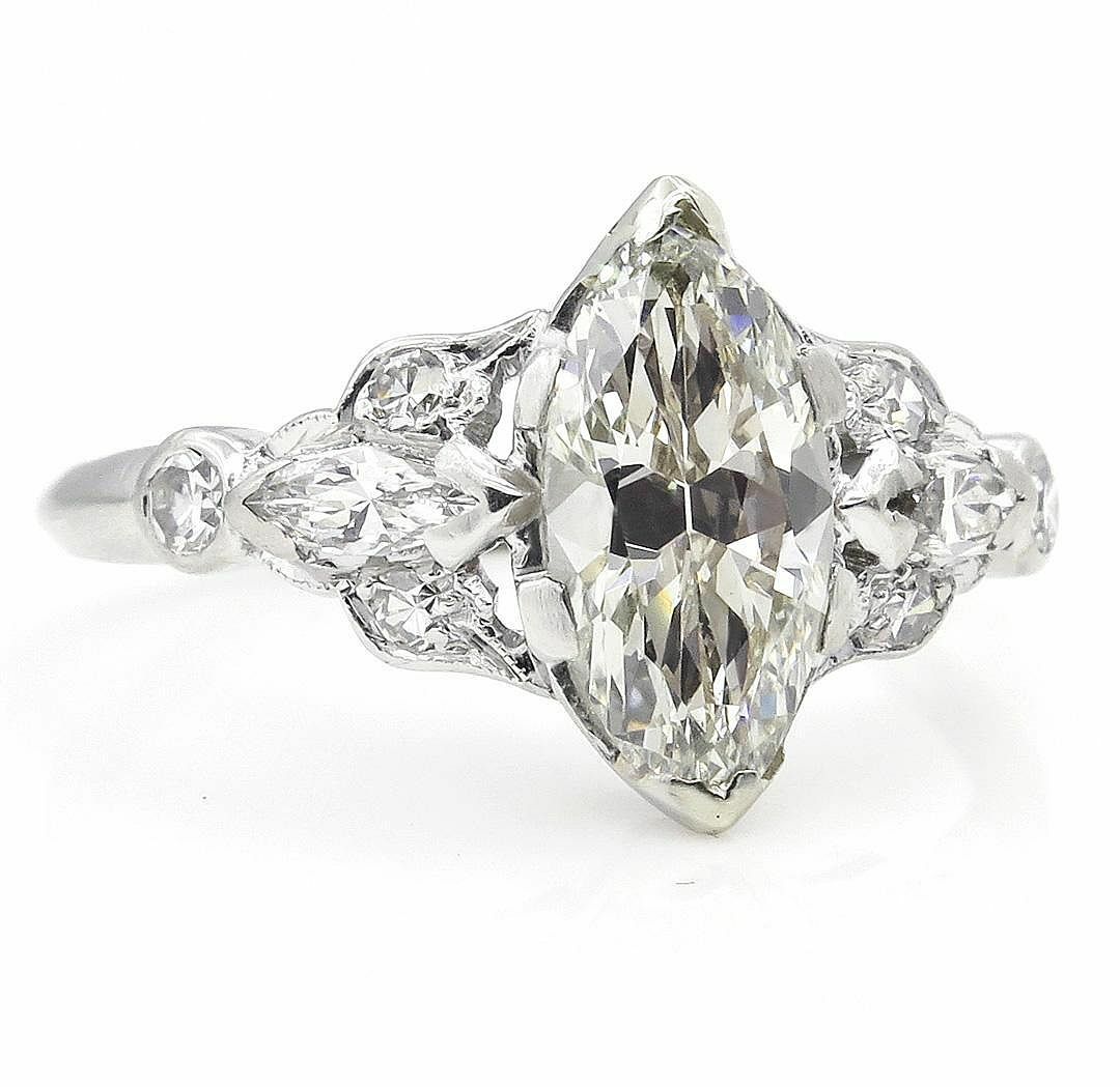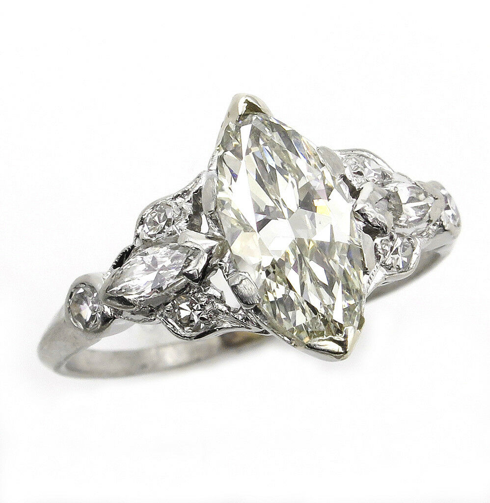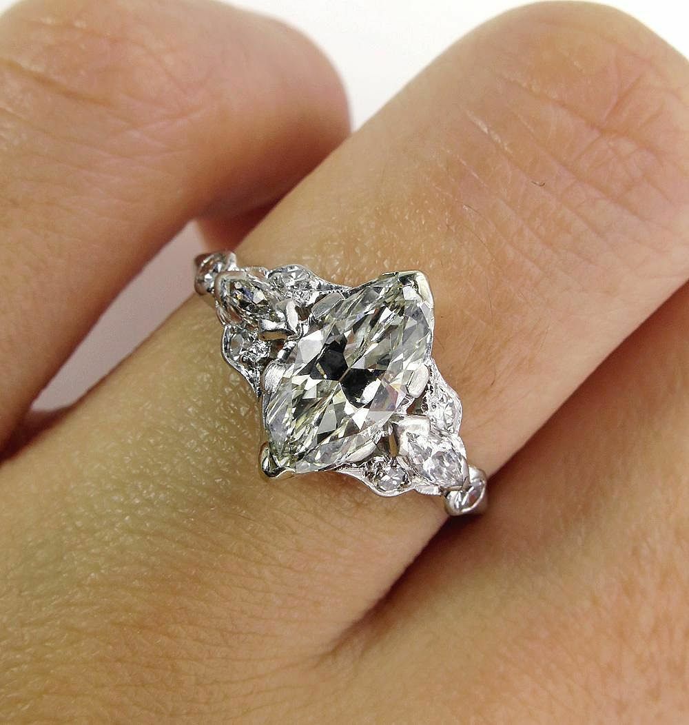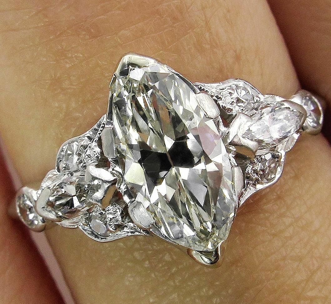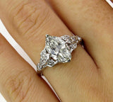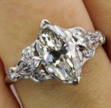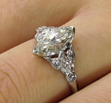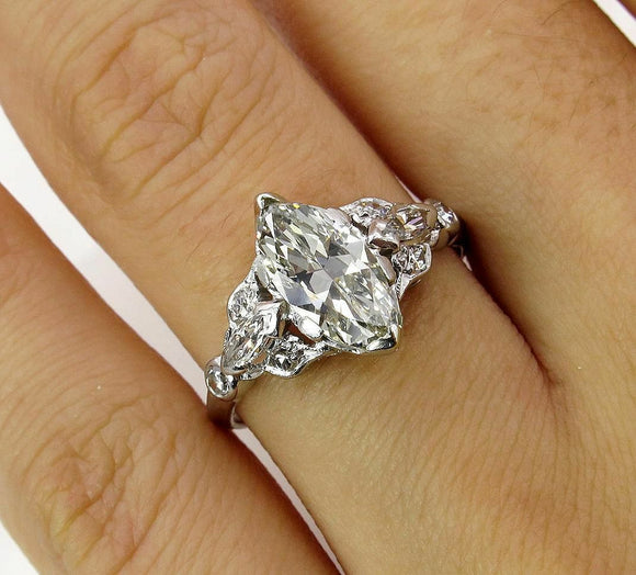 3Ct Marquise Diamond Vintage Design Accent Engagement Ring 14K White Gold Finish