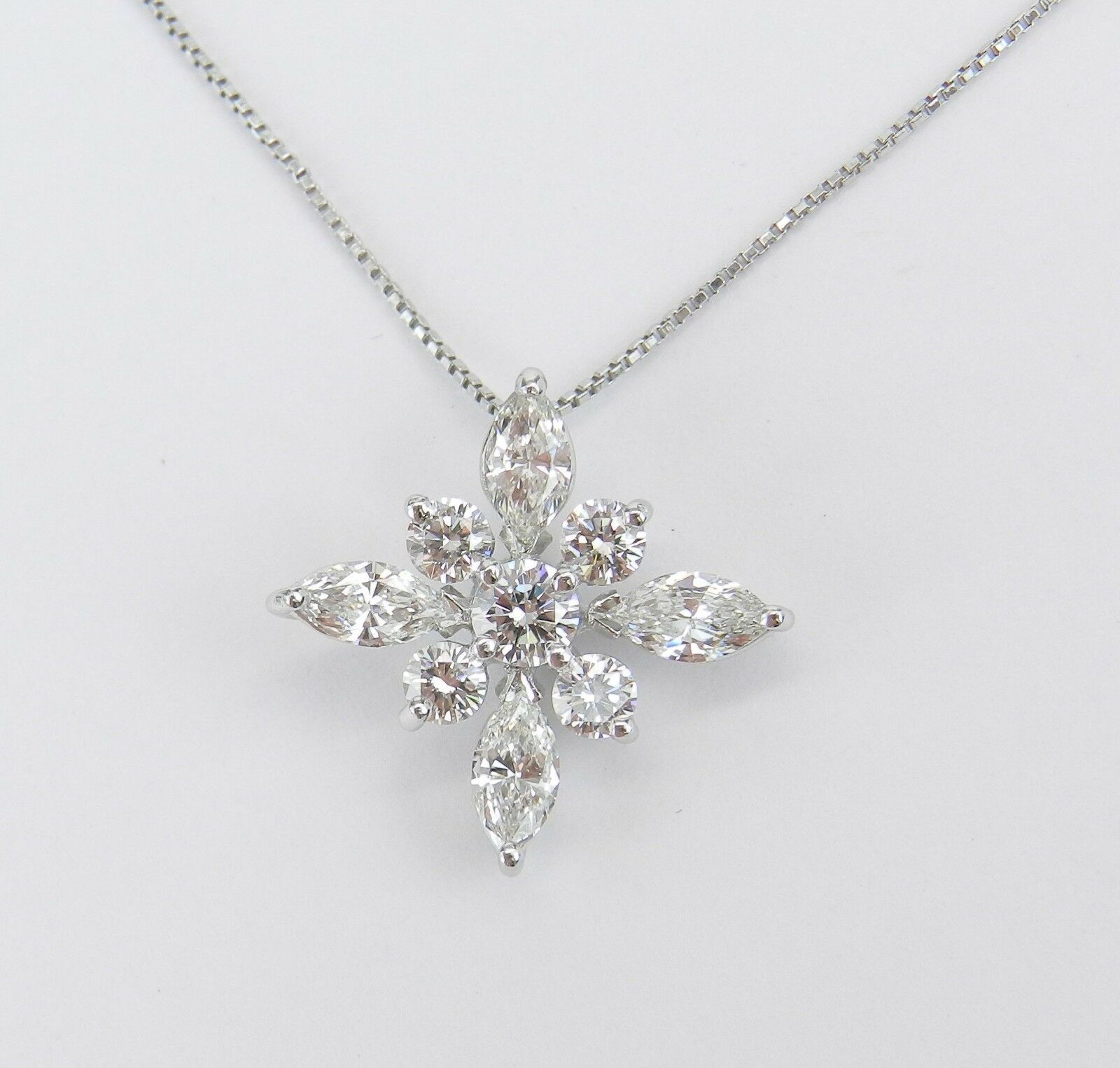 3ct Marquise Round Diamond Cross Design Pendant 14k White Gold Finish NO CHAIN