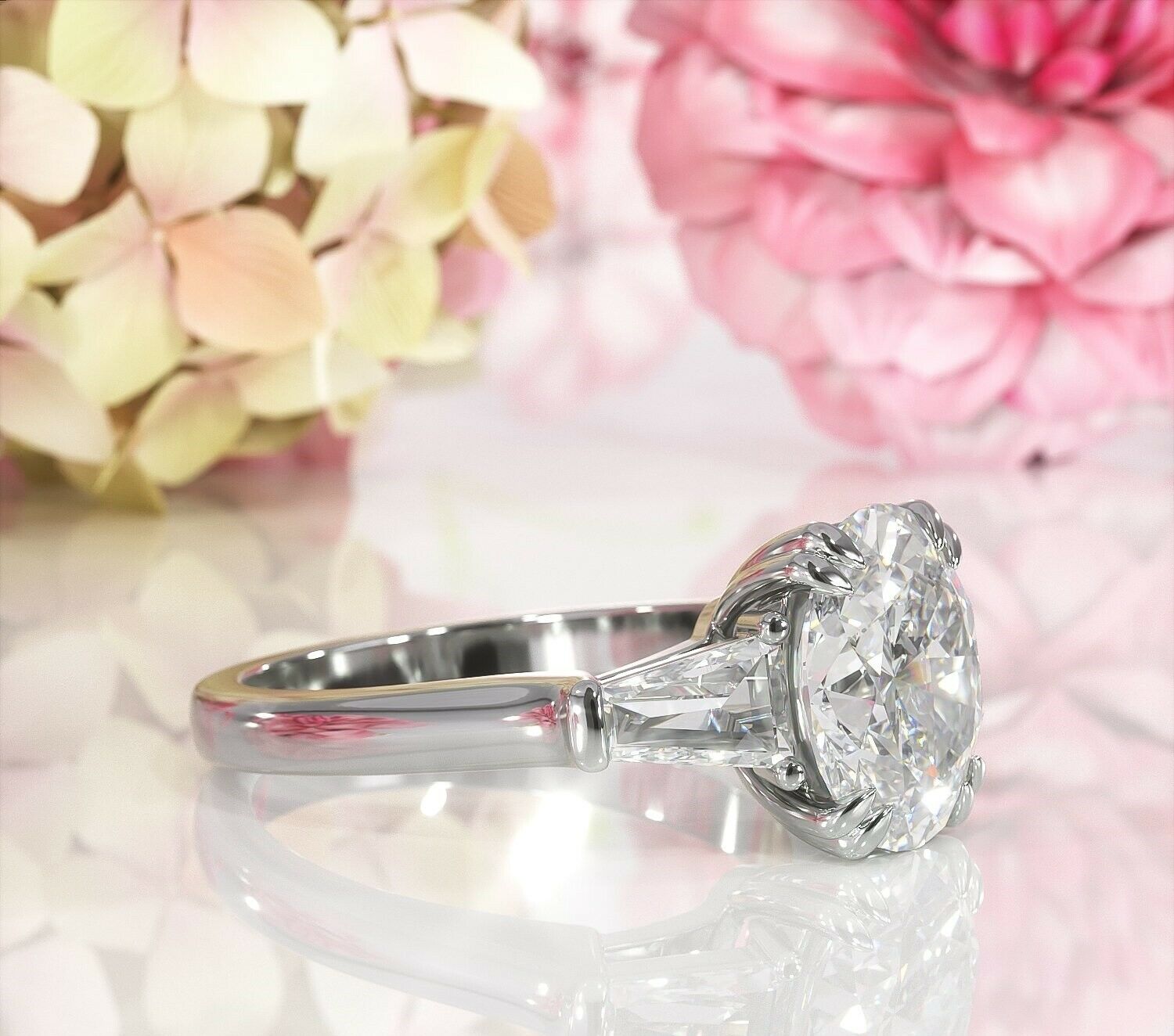 3Ct Oval Baguette Cut Diamond Three Stone Engagement Ring 14K White Gold Finish