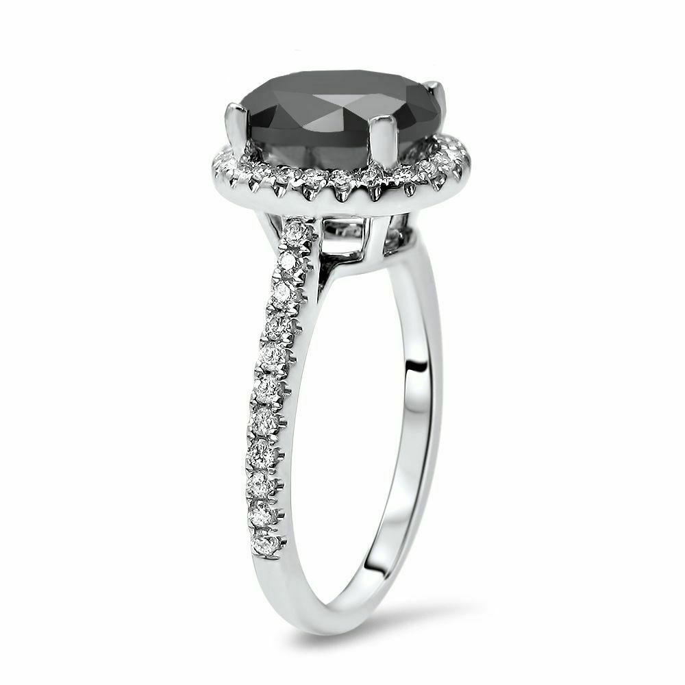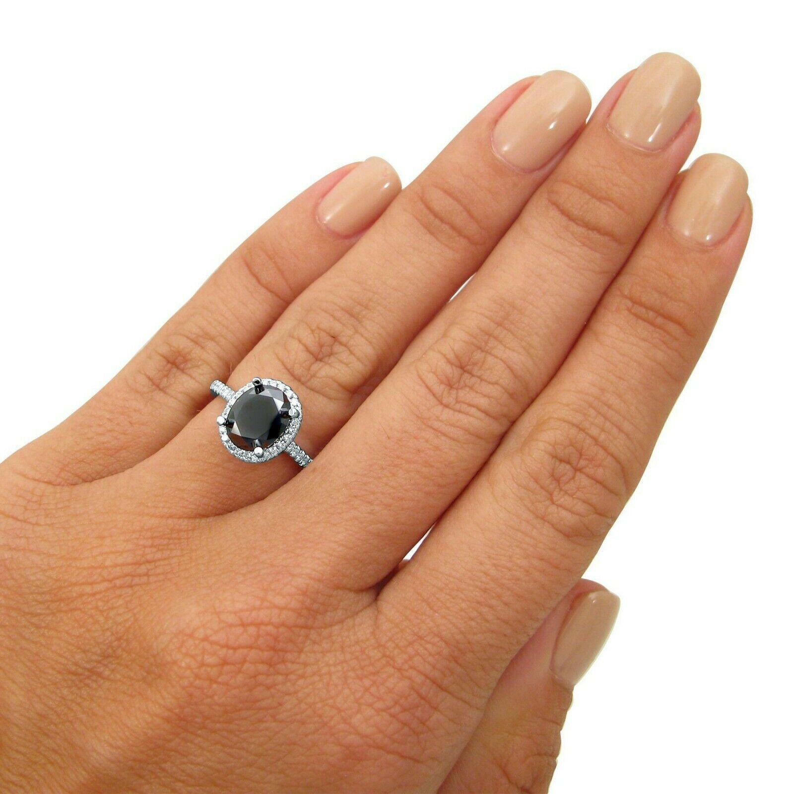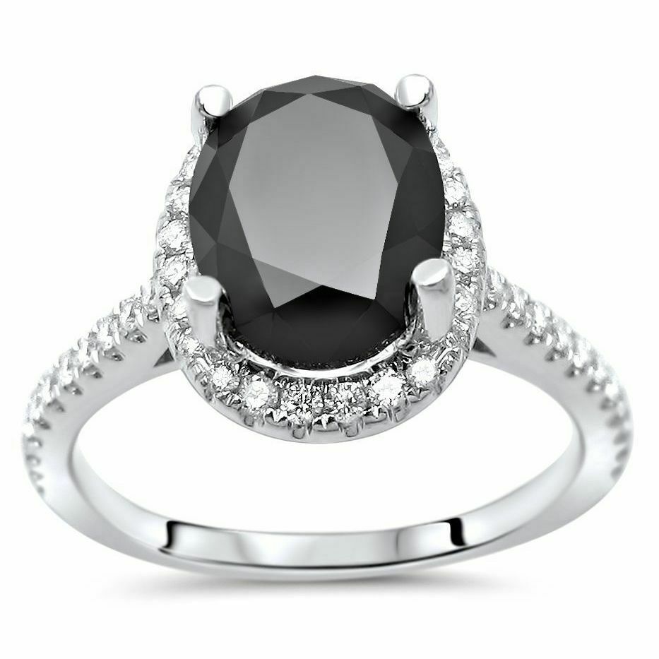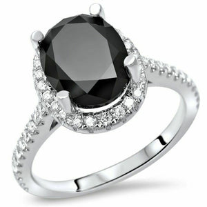 3Ct Oval Cut Black Diamond Halo Engagement Ring 14K White Gold Over Round Accent