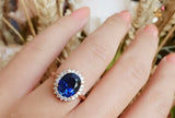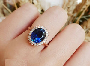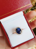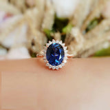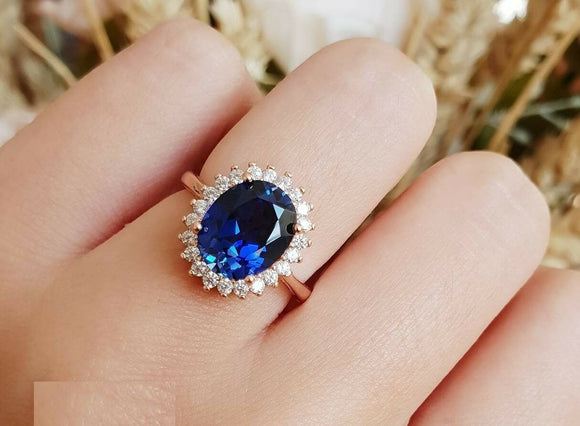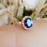 3ct Oval Cut Blue Sapphire Engagement Ring 14k Rose Gold Finish Halo Floral