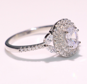 3ct Oval Cut Diamond Engagement Ring 14k White Gold Over Double Halo Leaf Design