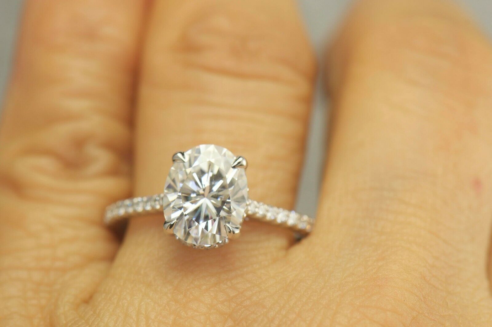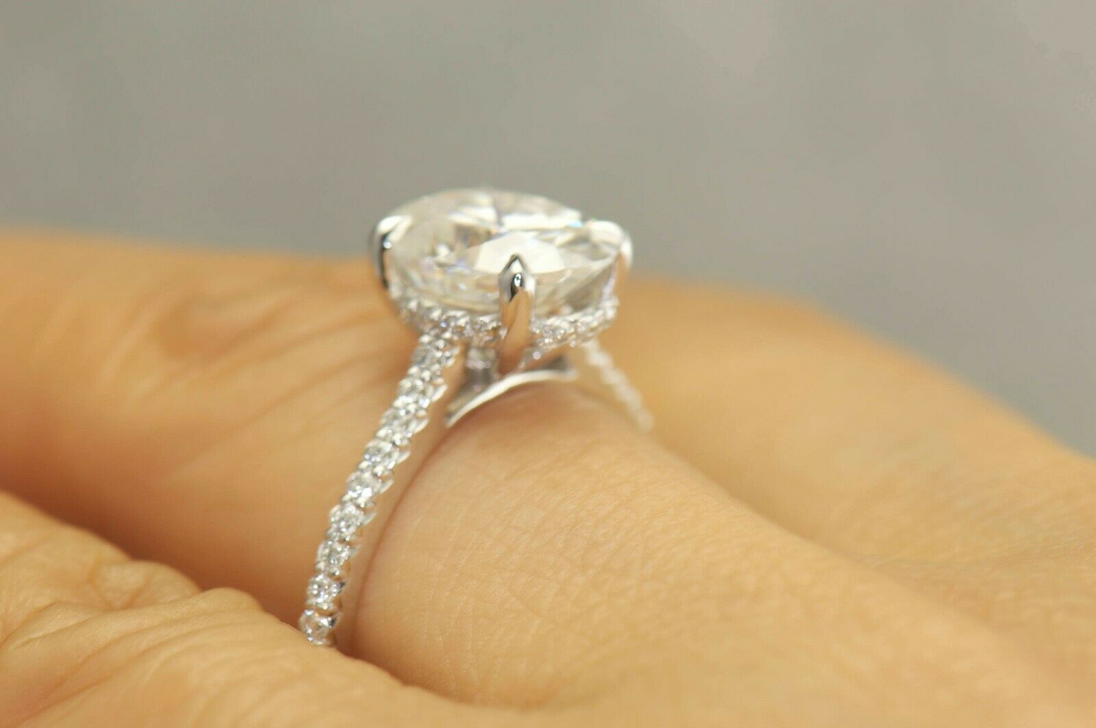 3Ct Oval Cut Diamond Hidden Halo Engagement Solitaire Ring 14K White Gold Finish