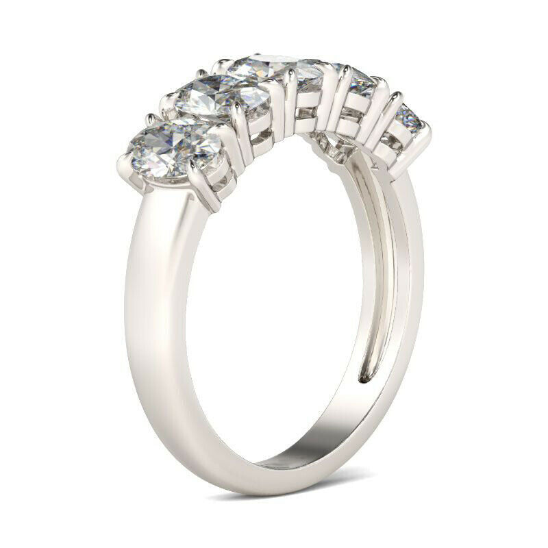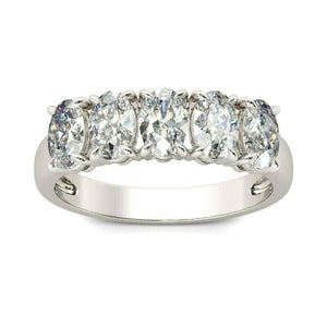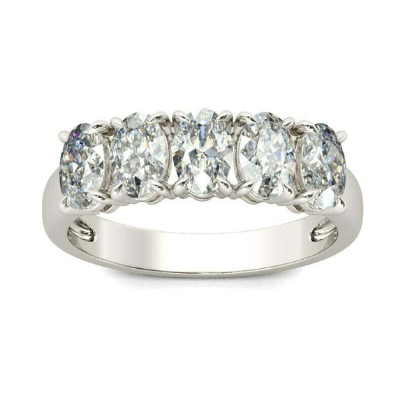 3Ct Oval Cut DVVS1 Diamond Five Stone Wedding Band Ring 14K White Gold Finish