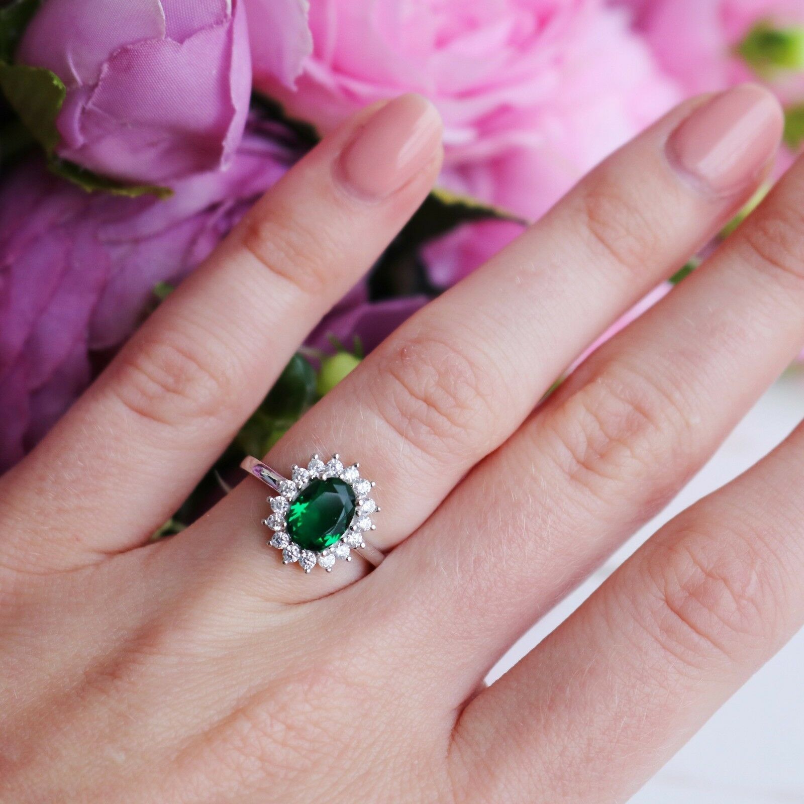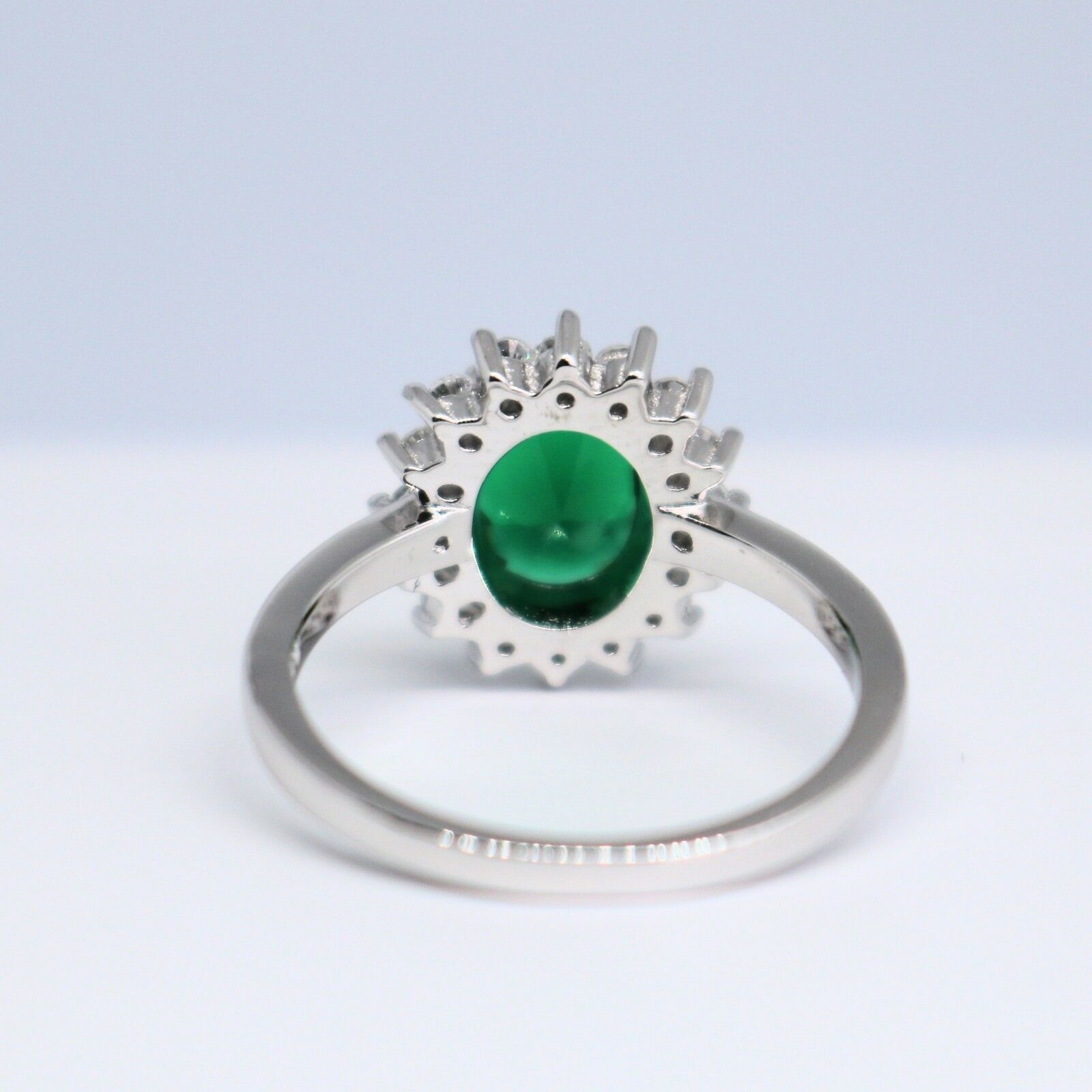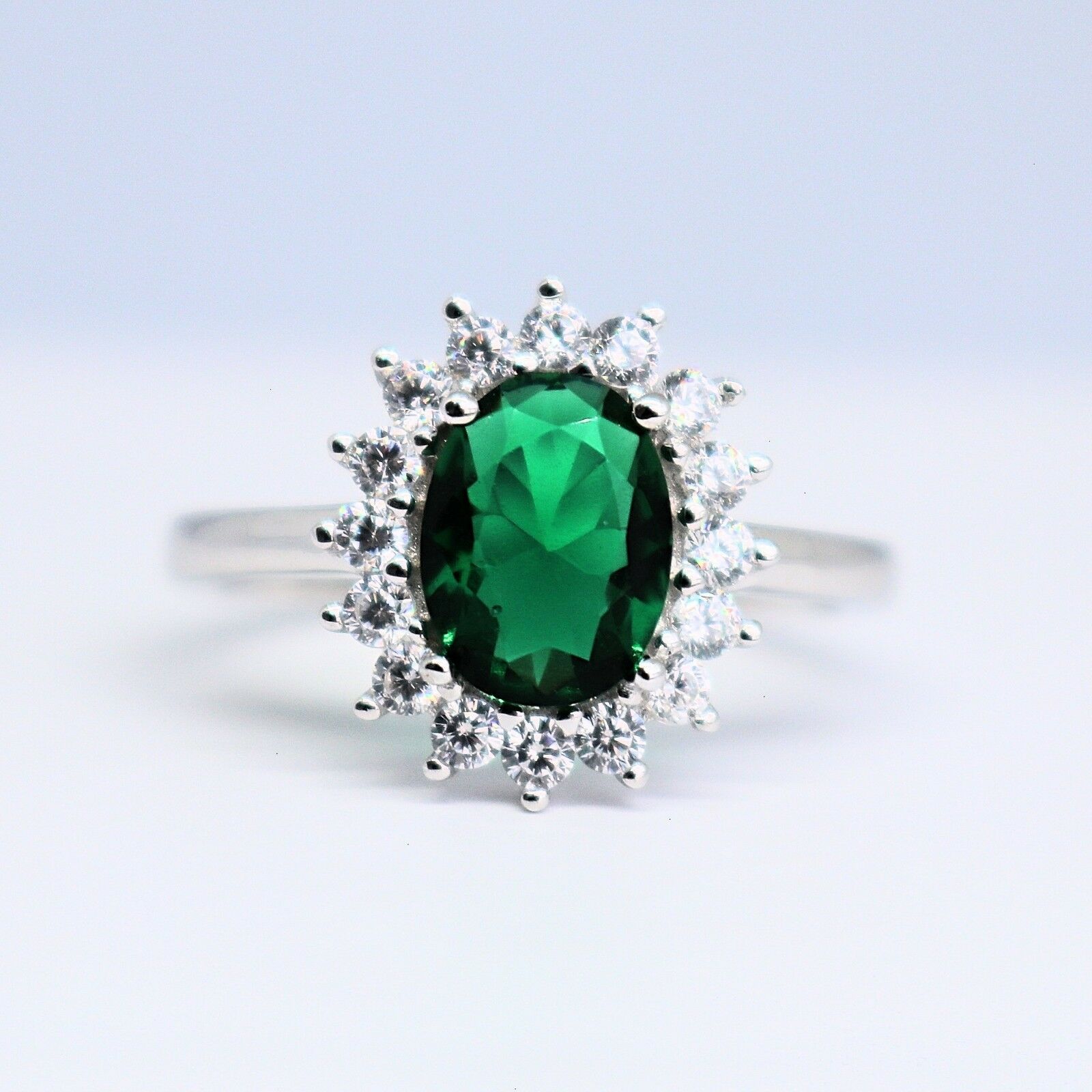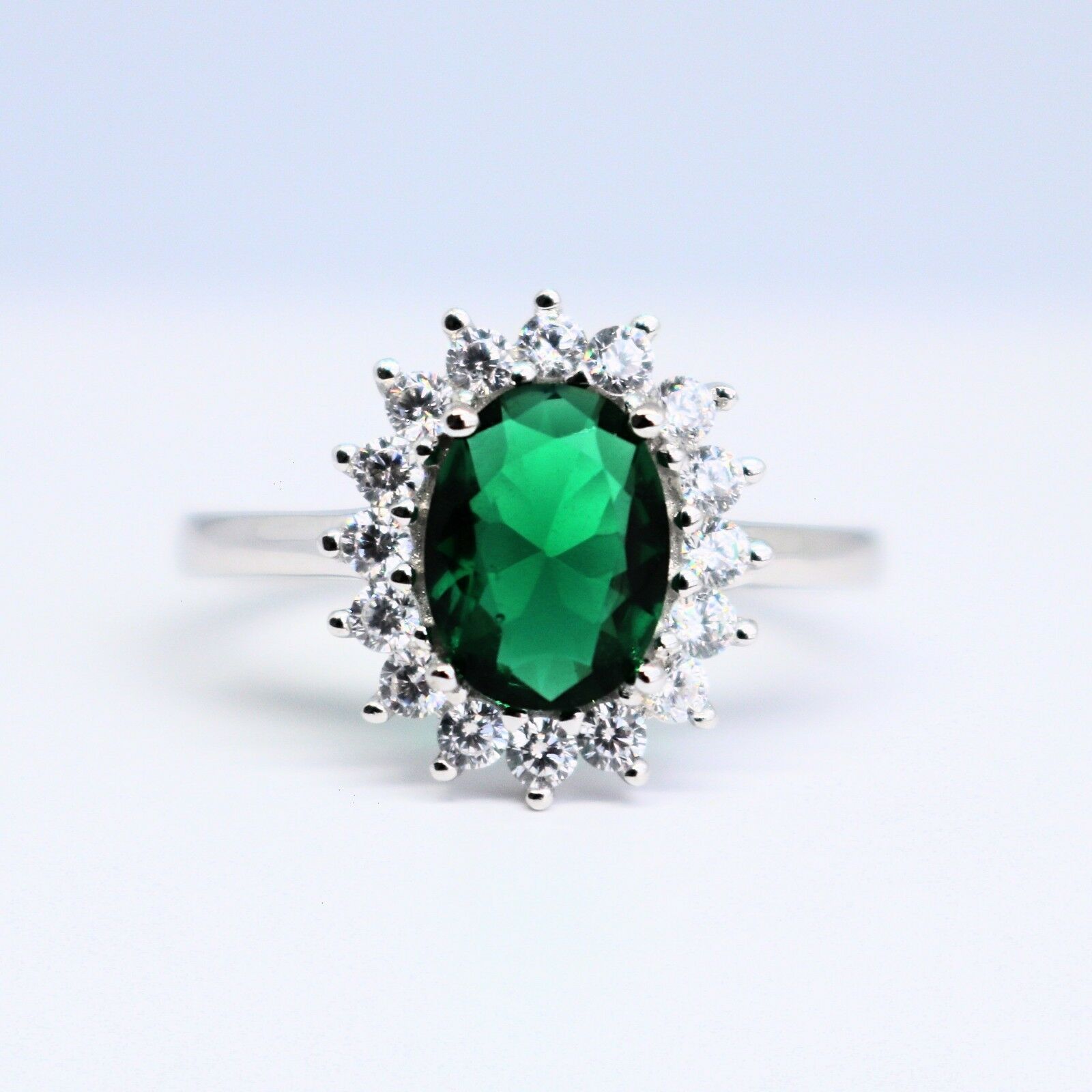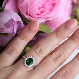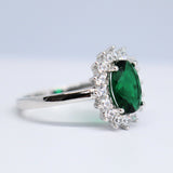 3Ct Oval Cut Green Emerald Diamond Floral Halo Solitaire Ring White Gold Finish