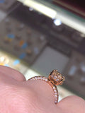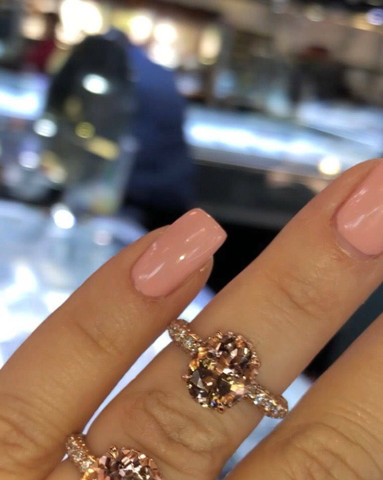 3Ct Oval Cut Peach Morganite Hidden Halo Iced Engagement Ring 14k Rose Gold Over