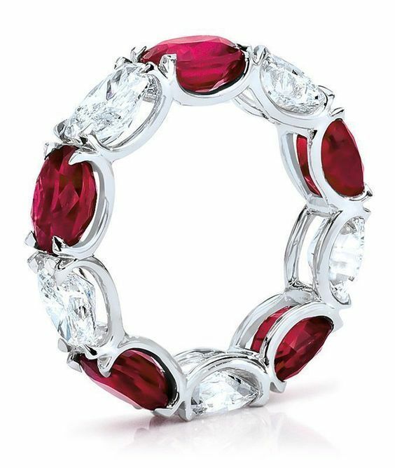 3ct Oval Cut Pink Ruby Diamond Eternity Design Wedding Band 14k WhiteGold Finish