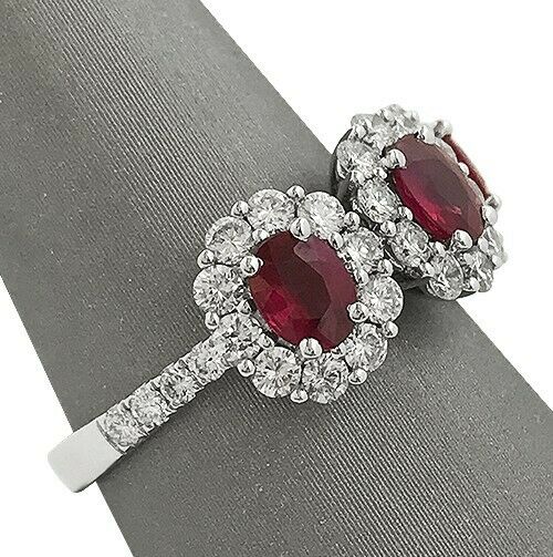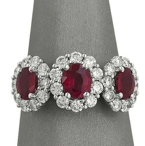 3Ct Oval Cut Pink Ruby Diamond Halo Trilogy Engagement Ring 14K White Gold Over