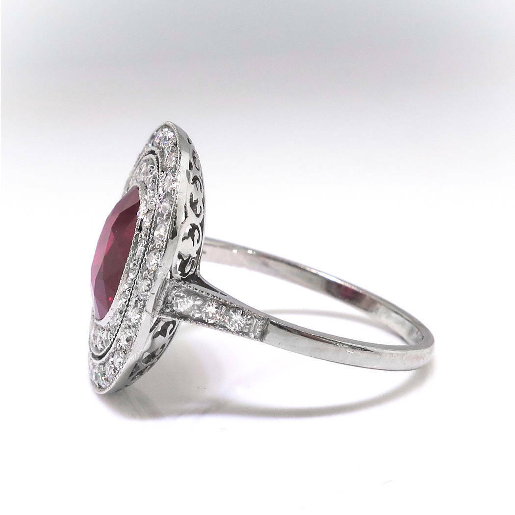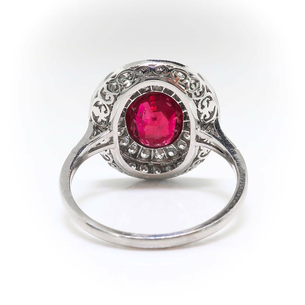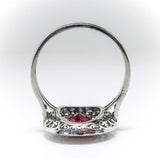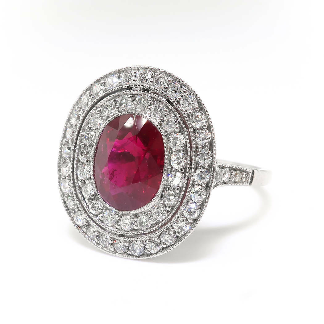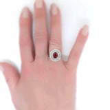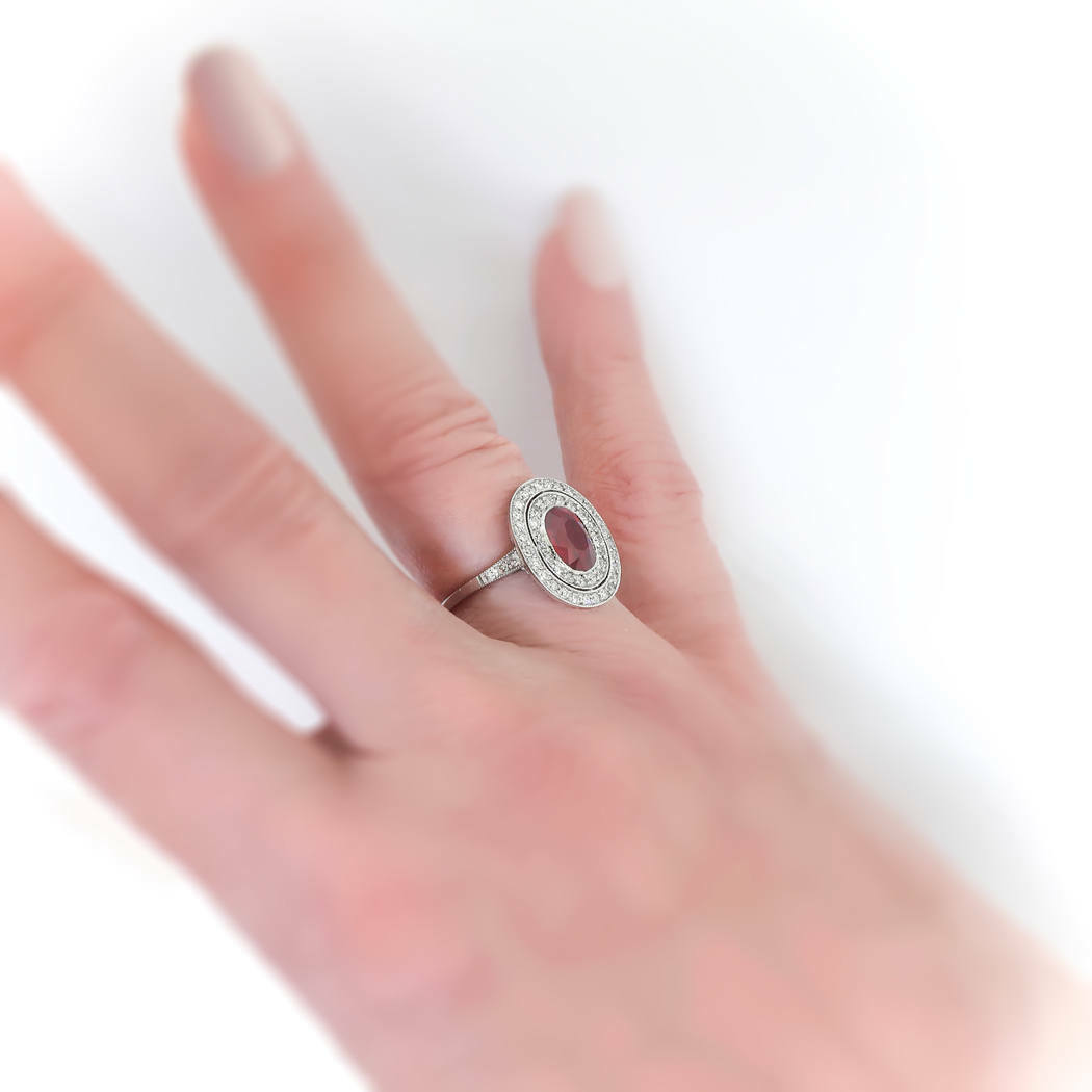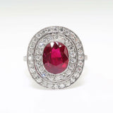 3ct Oval Cut Pink Ruby Double Halo ArtDeco Engagement Ring 14k White Gold Finish