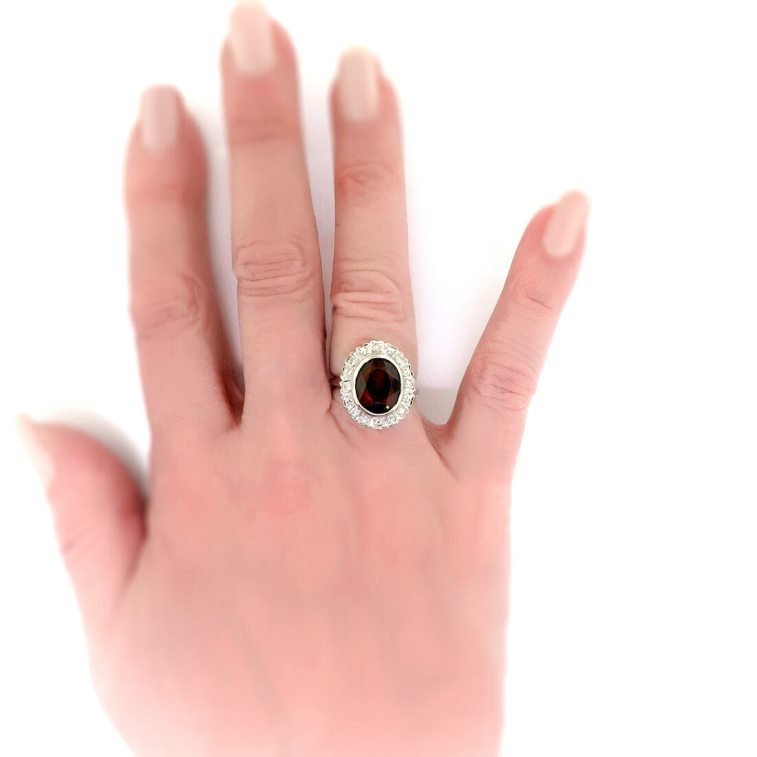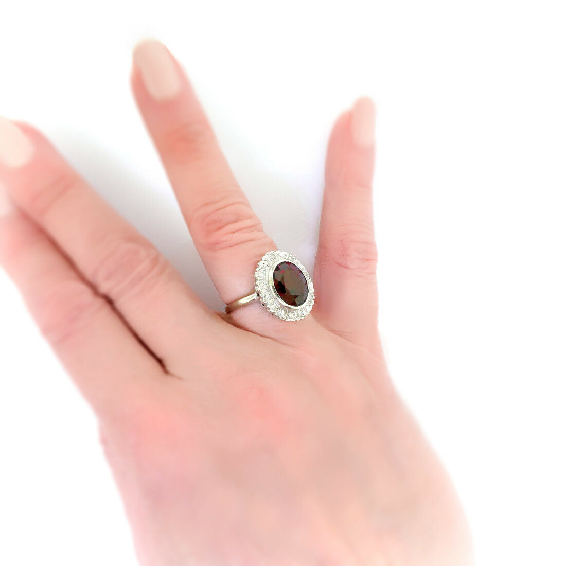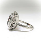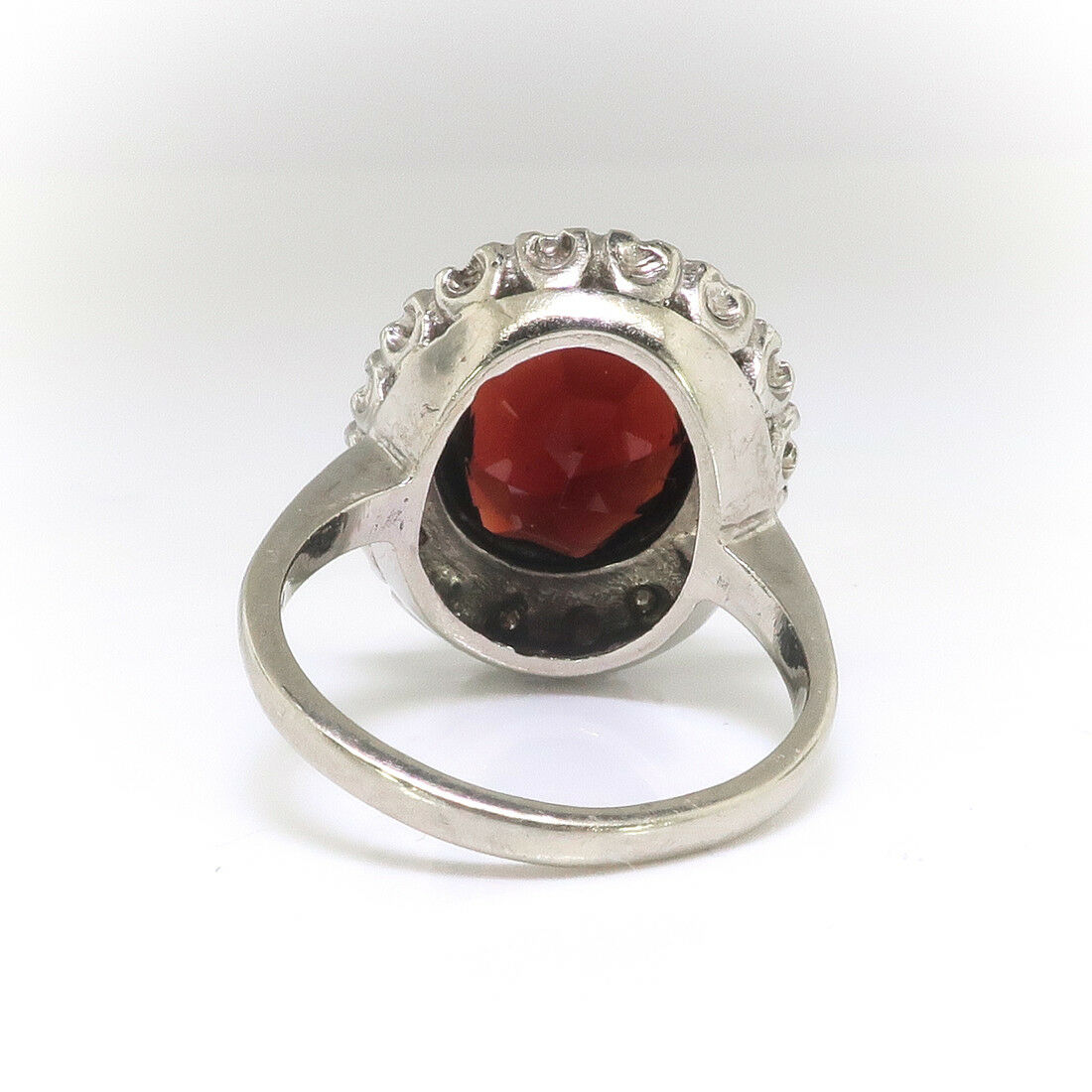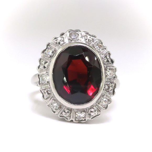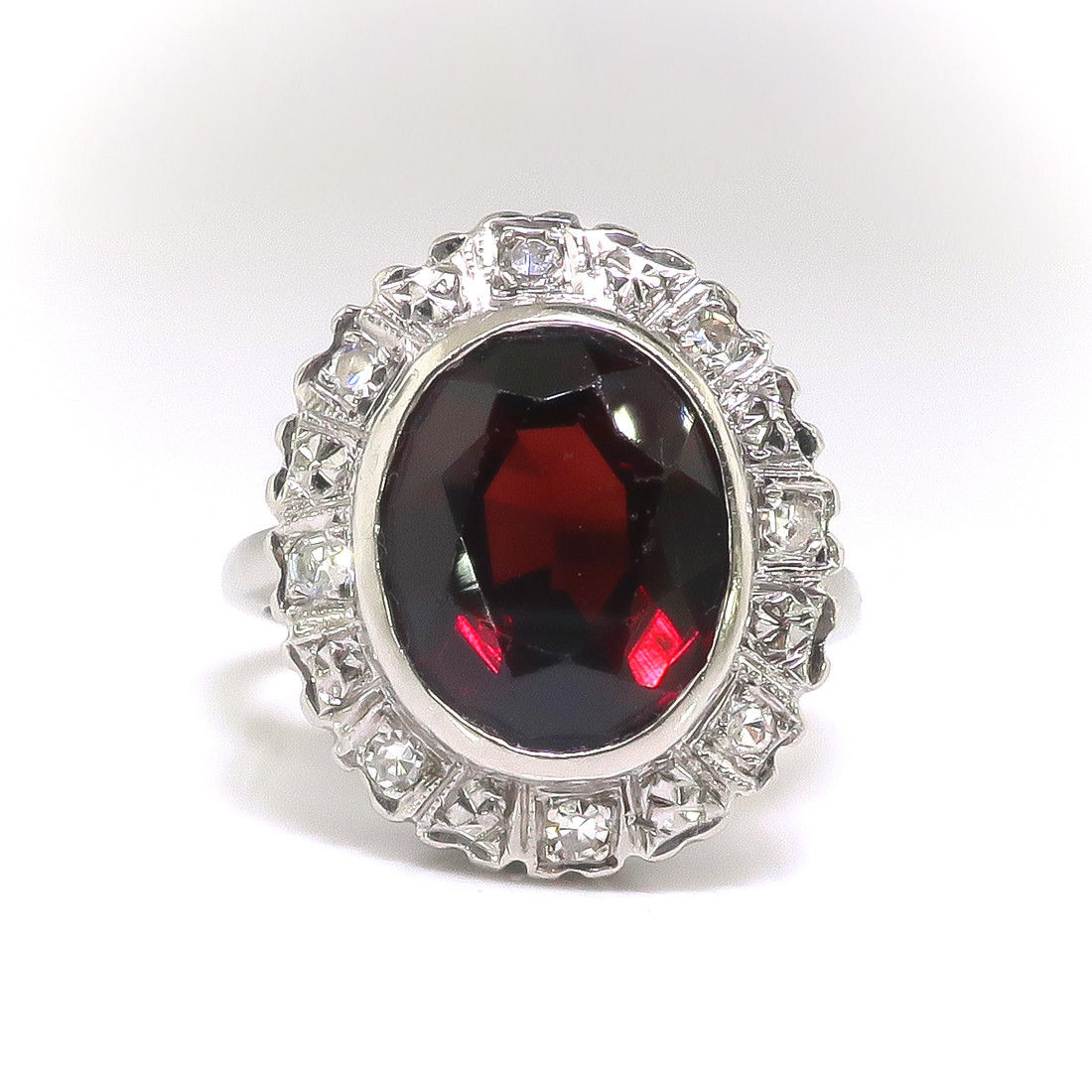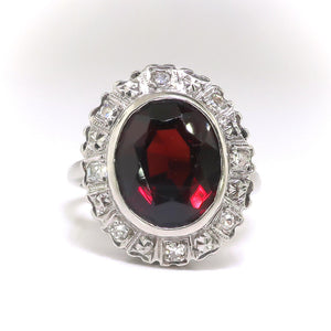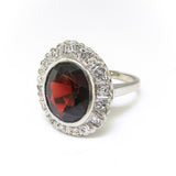 3ct Oval Cut Red Garnet Art Deco Edwardian Engagement Ring 14k White Gold Finish