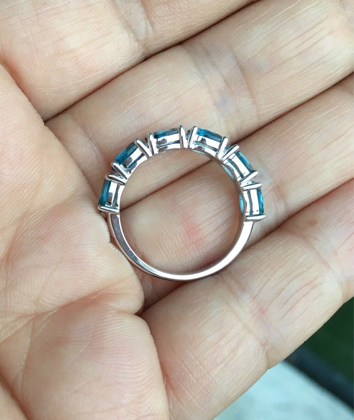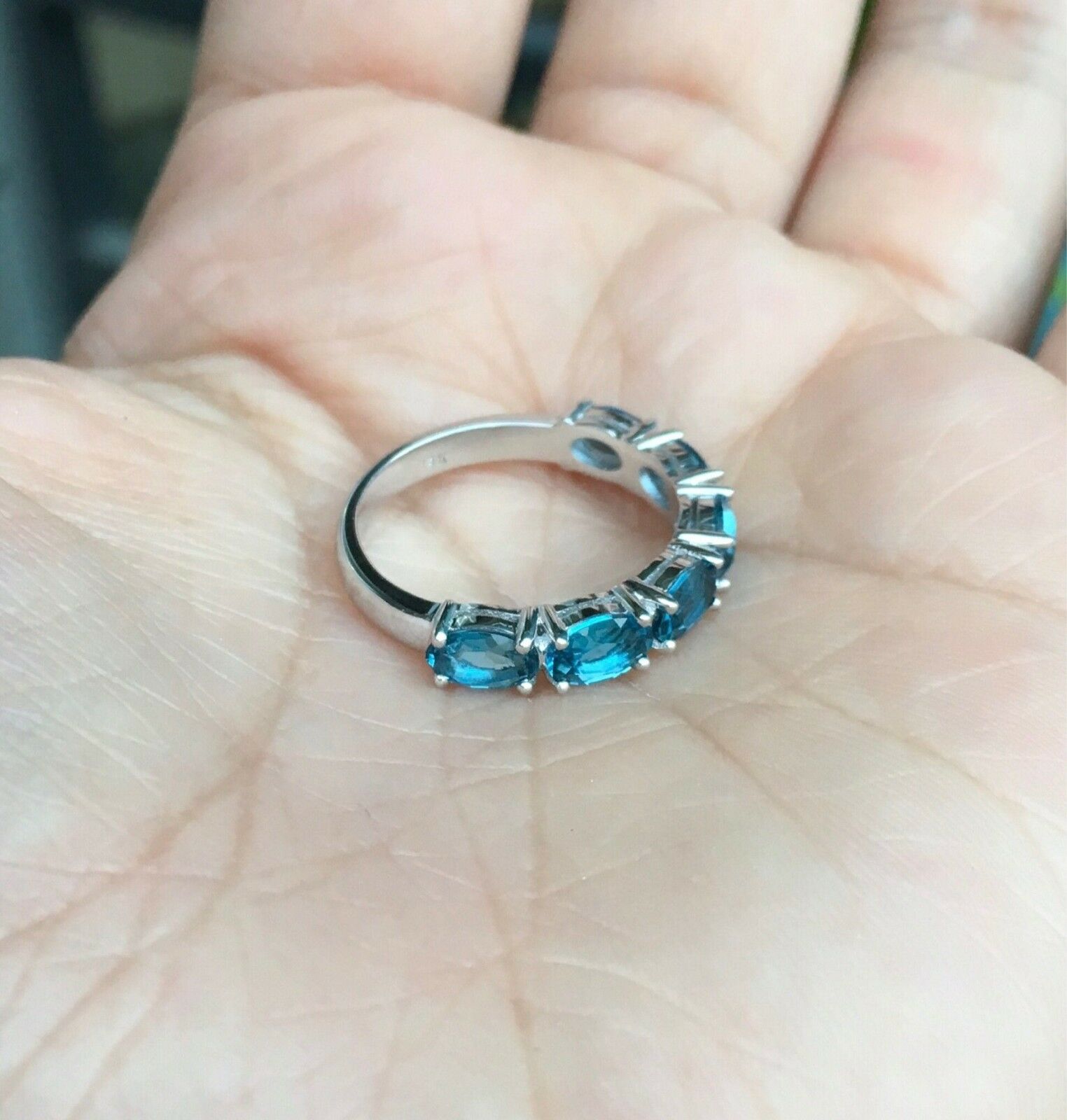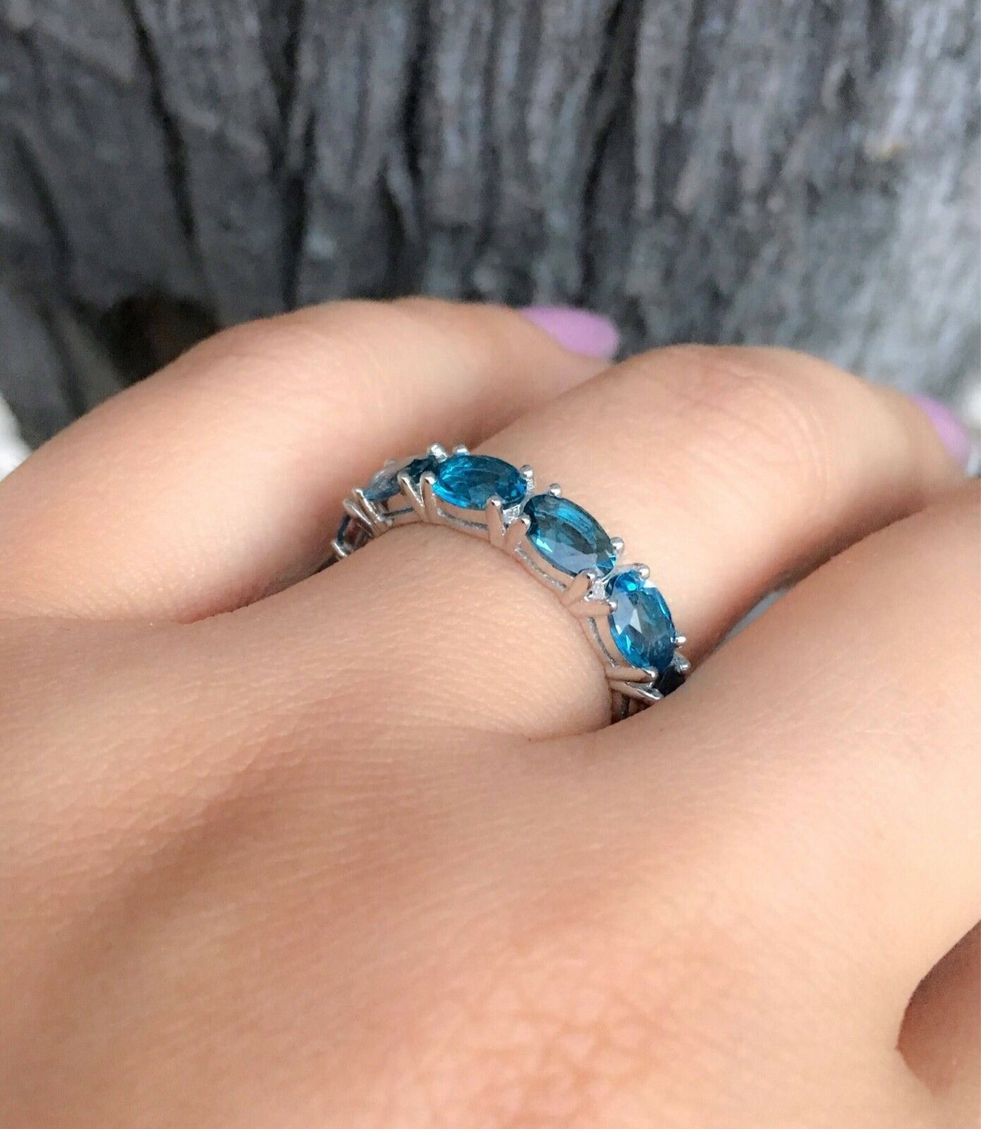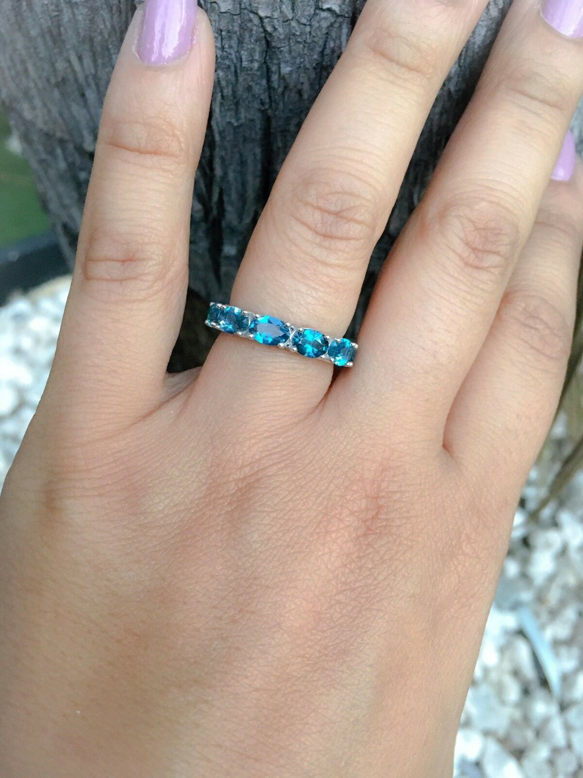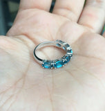 3ct Oval London Blue Topaz Half Eternity Engagement Ring Band 14k WhiteGold Over