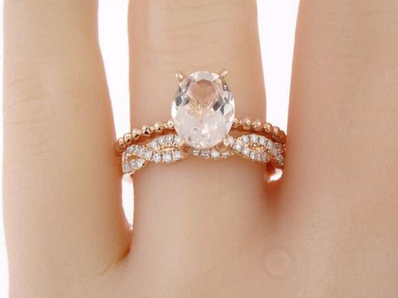 3Ct Oval Morganite Bridal Set Solitaire Ring Infinity Band 14K Rose Gold Finish