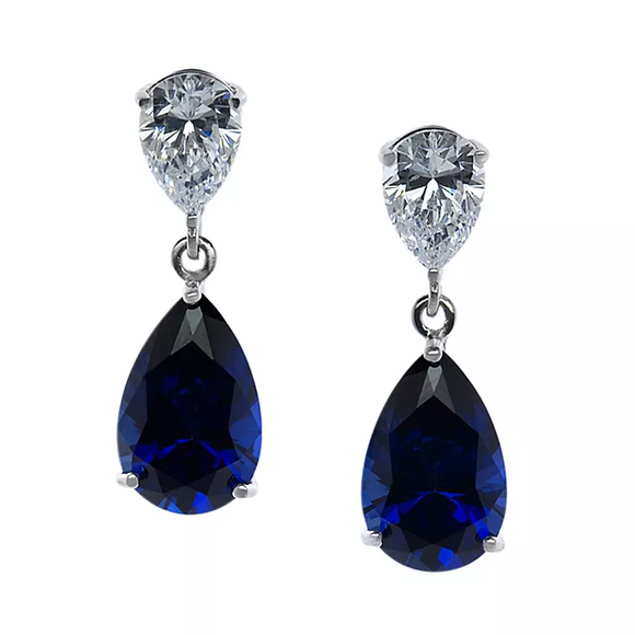 3Ct Pear Cut Blue Sapphire Diamond Elegant Tear Drop Earring 14K White Gold Over