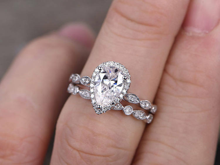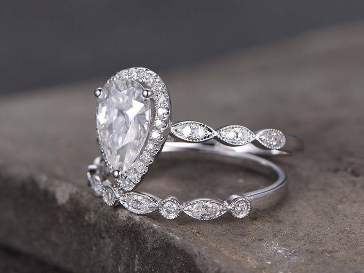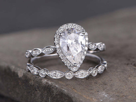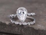 3ct Pear Cut Diamond Vintage Bridal Wedding Set Band Ring 14k White Gold Finish