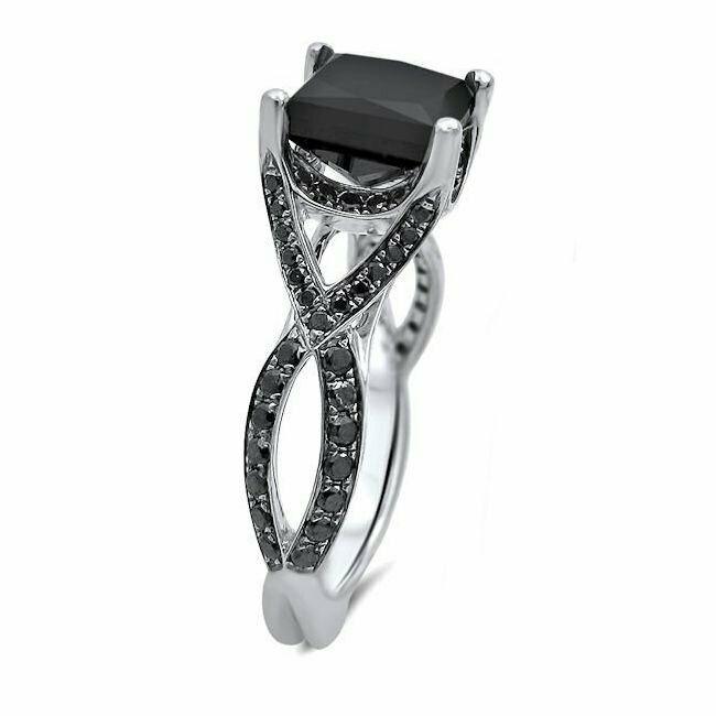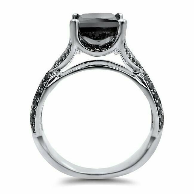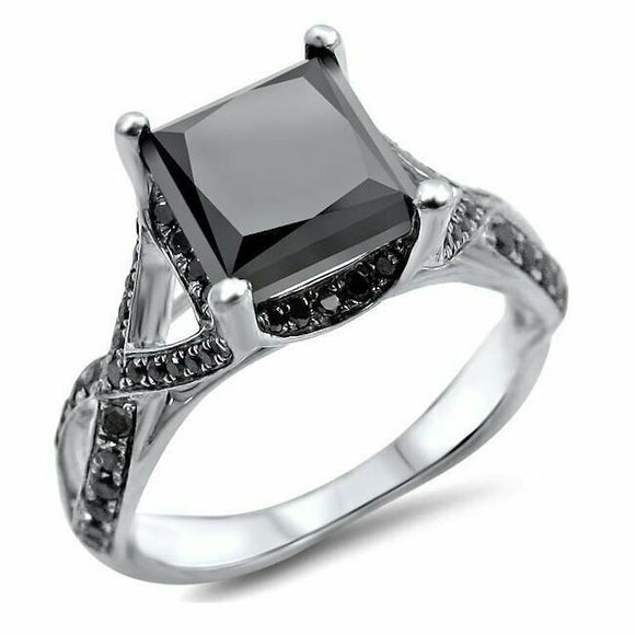 3Ct Princess Cut Black Diamond Split Shank Engagement Ring 14K White Gold Finish