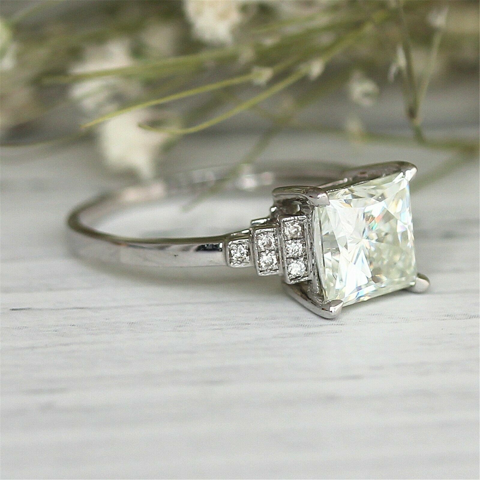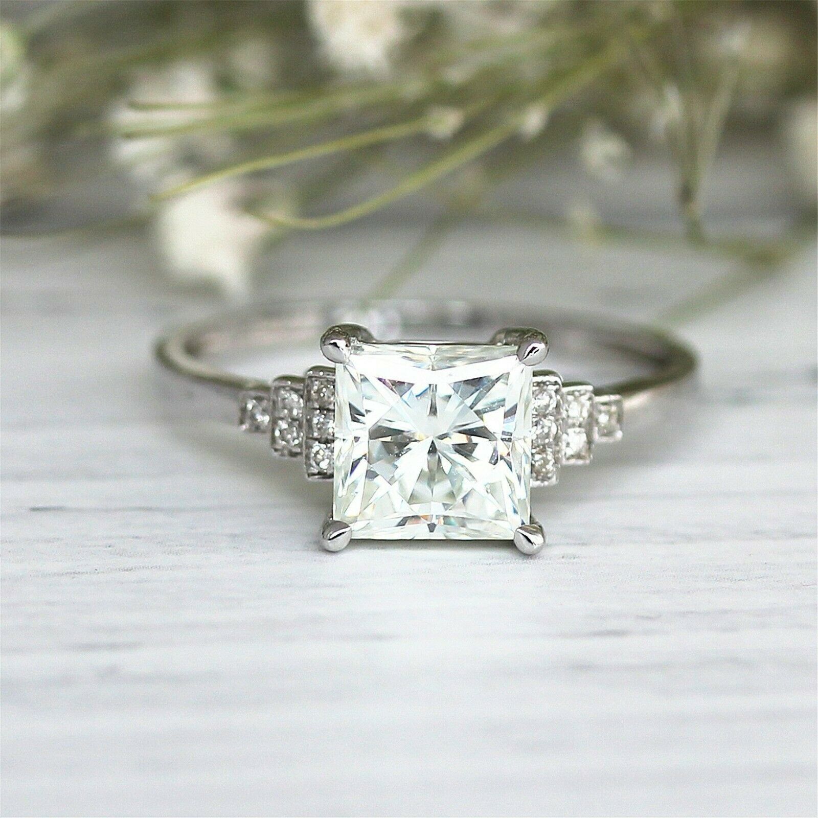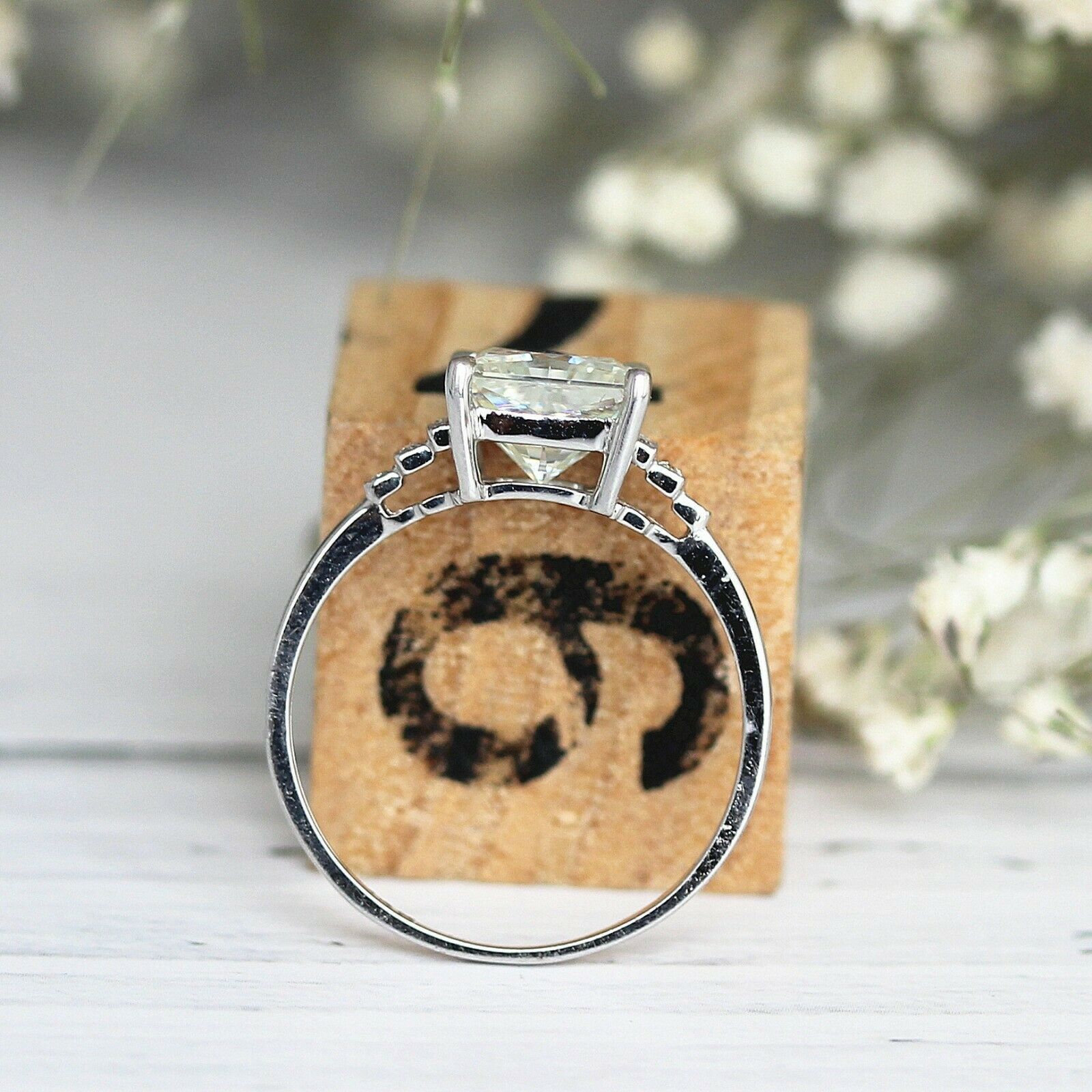 3Ct Princess Cut Diamond Accents Solitaire Engagement Ring 14K White Gold Finish