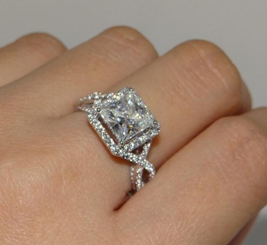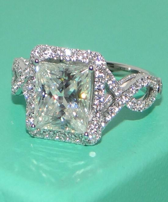 3Ct Princess Cut Diamond Infinity Band Halo Solitaire Ring 14K White Gold Finish