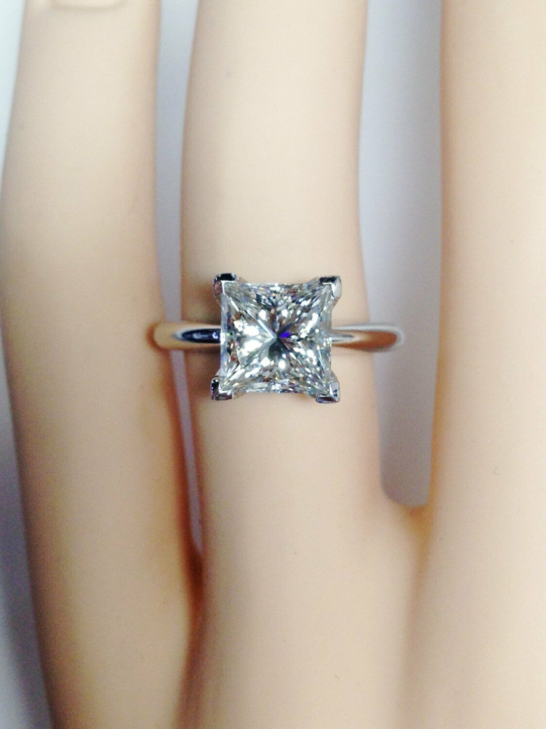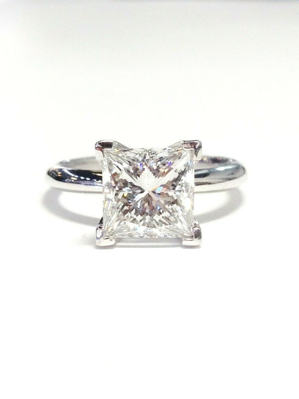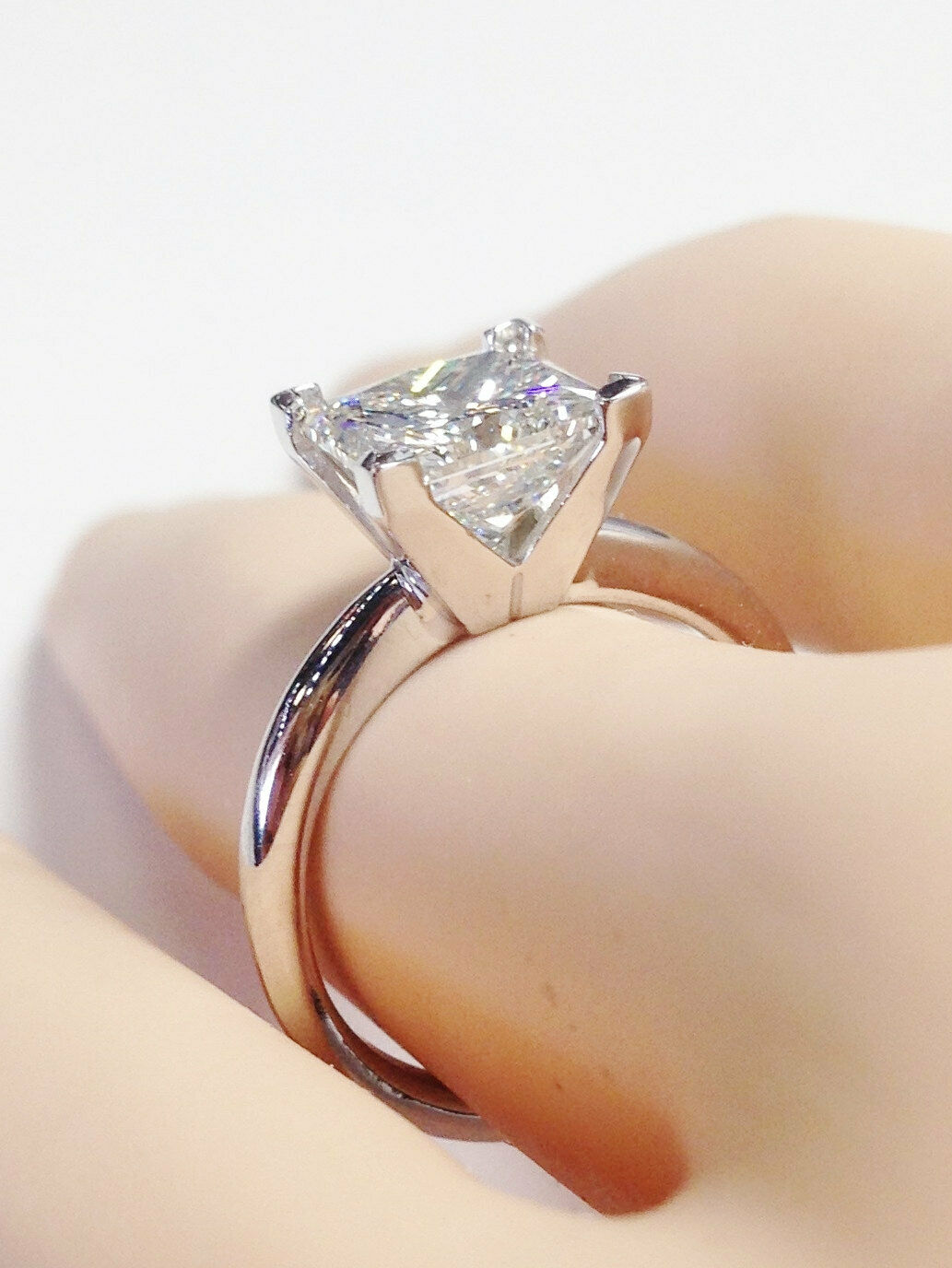 3Ct Princess Cut DVVS1 Diamond Engagement Solitaire Ring 14K White Gold Finish
