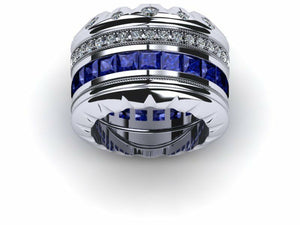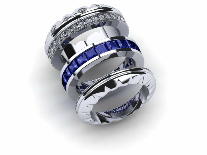 3ct Princess Cut Sapphire Diamond Unique Trio Wedding Band 14k White Gold Finish